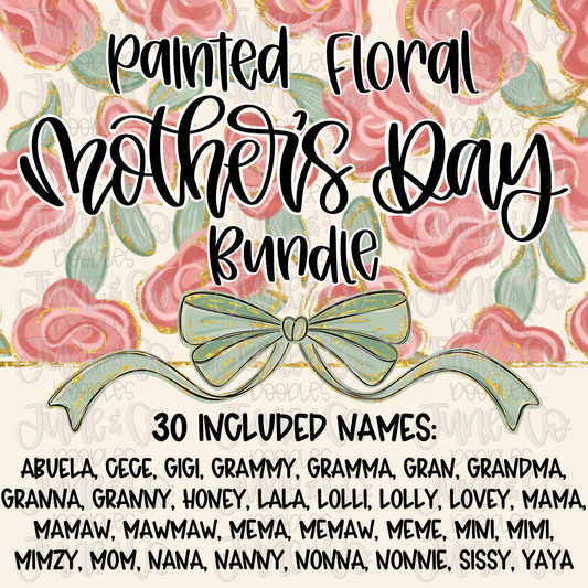 Painted Floral Mother's Day PNG Bundle| 30 individual Mother's Day Name Files At A Discounted Price
