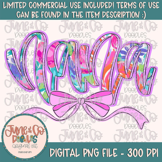 Bright Floral Nana PNG| Nana With Bow Sublimation File| Floral Mother's Day Shirt Design| Hand Lettered Printable Art| Digital Download