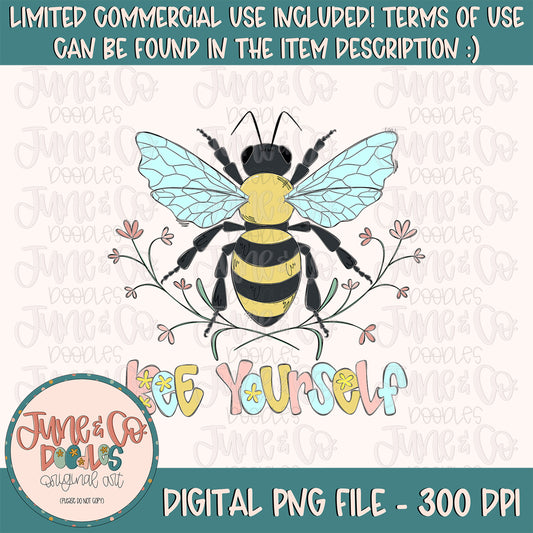 Bee Yourself PNG| Honey Bee Sublimation File| Inspirational Spring Shirt Design| Hand Sketched Printable Art| Instant Download