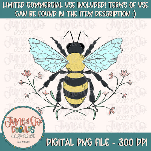 Floral Bee PNG| Honey Bee Sublimation File| Inspirational Spring Shirt Design| Hand Sketched Printable Art| Instant Download