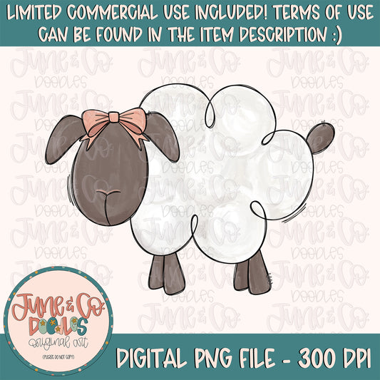 Painted Sheep With Bow PNG| Sketchy Sheep Doodle Sublimation File| Christian Spring Design| Hand Sketched Printable Art| Instant Download