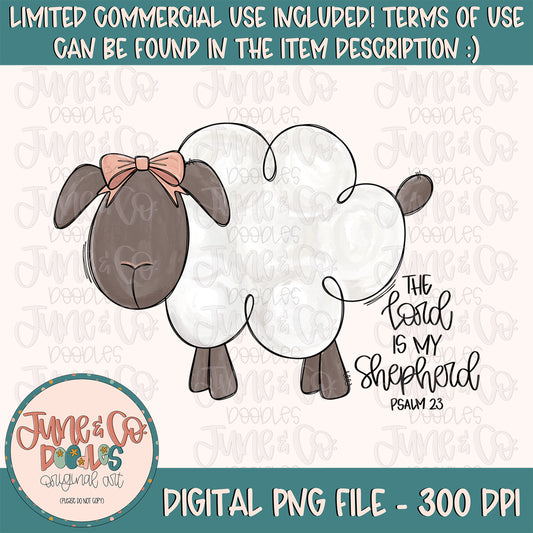 Psalm 23 Sheep With Bow PNG| Painted Sheep Doodle Sublimation File| Christian Easter Design| Hand Sketched Printable Art| Instant Download
