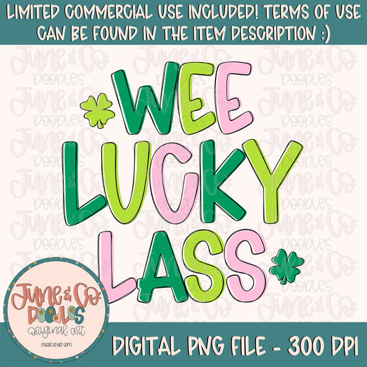 Wee Lucky Lass PNG| St. Patrick's Day Sublimation File| Girls Lucky Shirt Design| Hand Lettered Printable Art| Instant Download