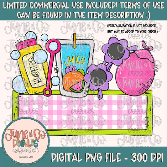 Girls Summer Things With Name Plate PNG| Summer Time Sublimation File| Outside Fun Shirt Design| Printable Art| Instant Download