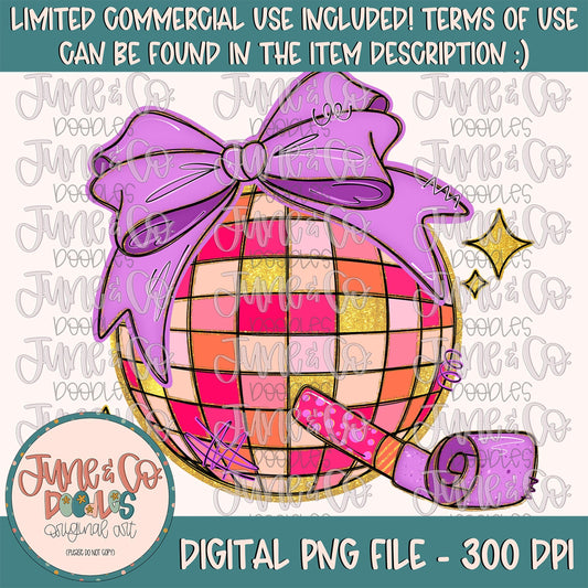 Coquette Disco Ball PNG| Disco Ball In Bow Sublimation File| Girls New Year's Eve Shirt Design| Hand Drawn Printable Art| Digital Download