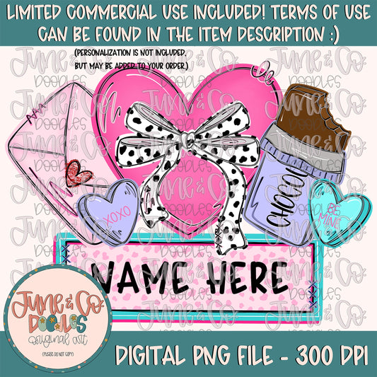 Girl Valentine's Cow With Name Plate PNG| Cow In Bow Sublimation File| Country Valentine's Day Shirt Design|Hand Drawn Art| Digital Download