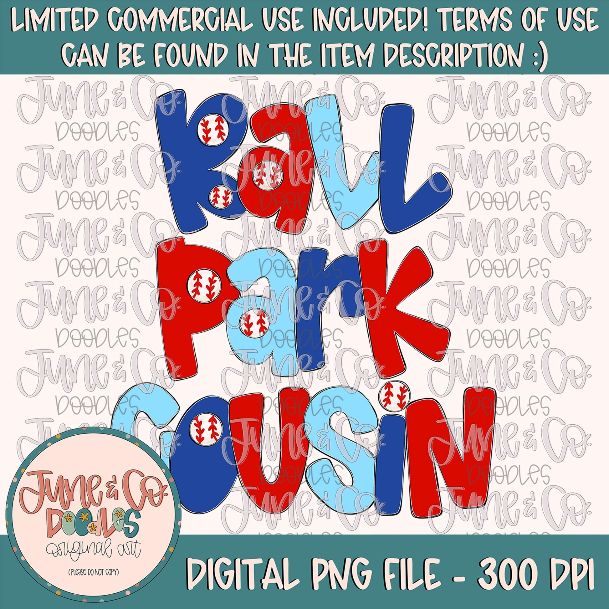Ballpark Cousin PNG| Family Baseball Sublimation File| Spring Sports Shirt Design| Hand Lettered Printable Art| Digital Download
