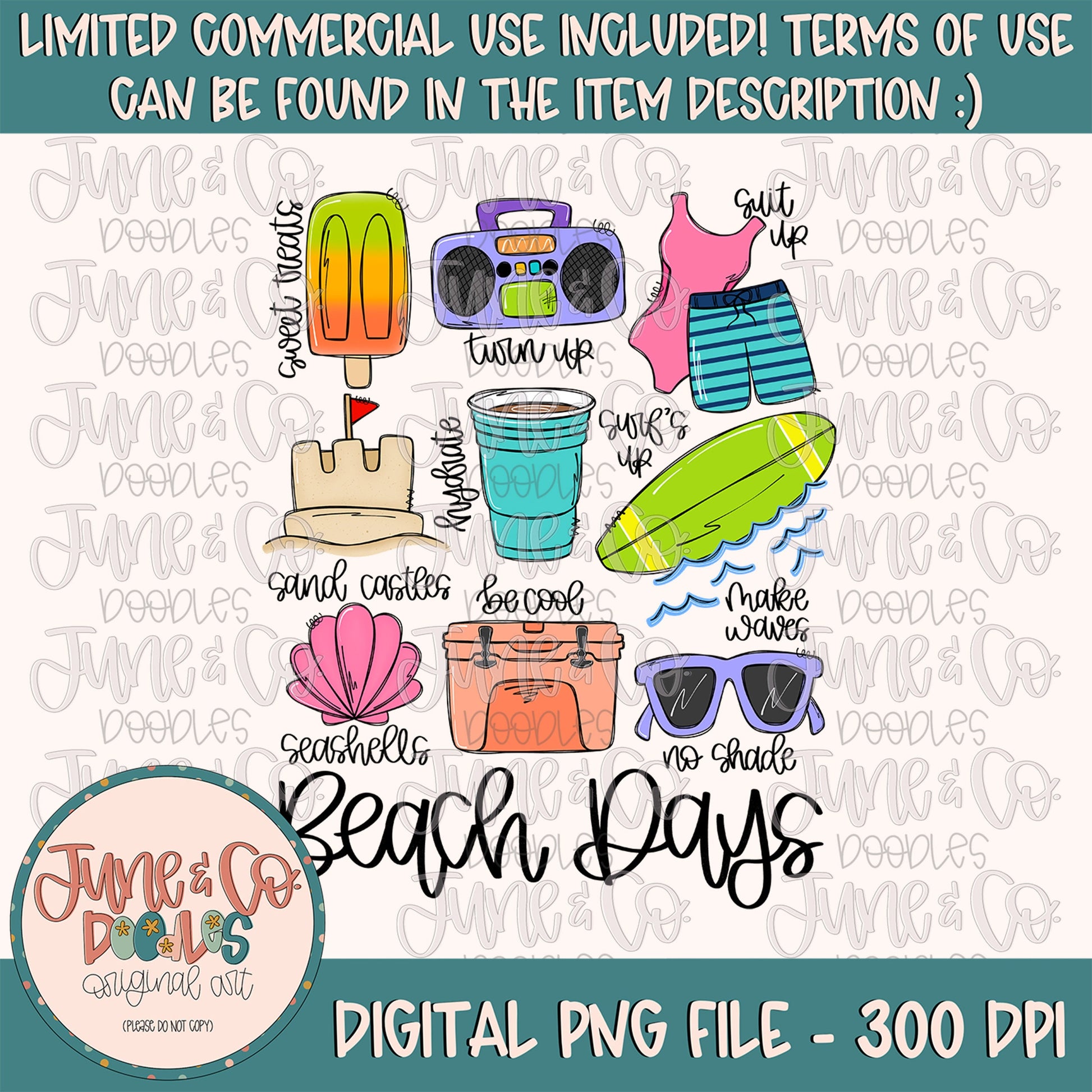 Beach Days PNG| Beach Things Sublimation File| Summer Time Doodles| Beach Fun Shirt Design| Hand Lettered Printable Art| Instant Download