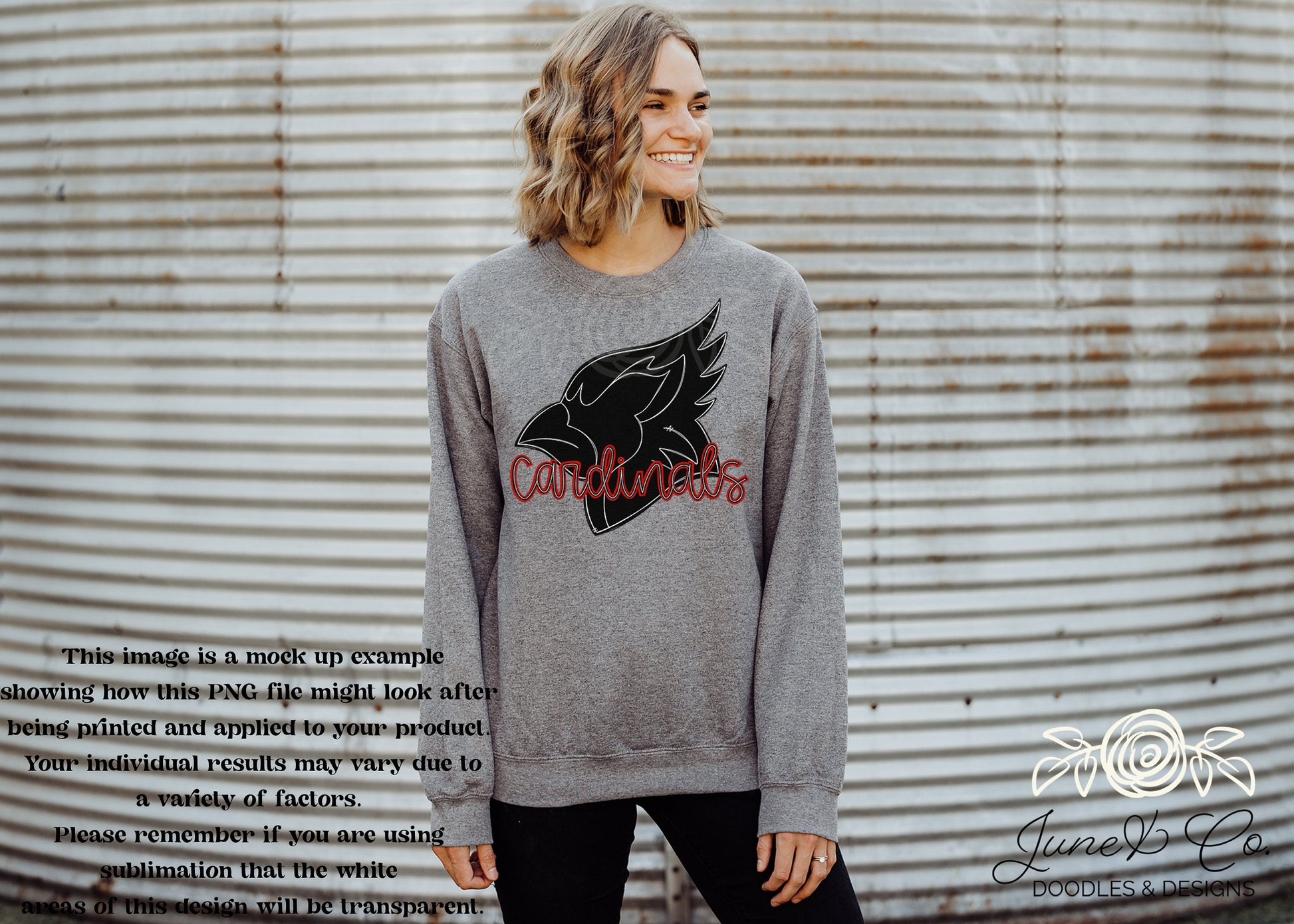 Cardinals Silhouette PNG| Mascot Doodle Sublimation File| Game Day Shirt Design| Hand Lettered Printable Art| Instant Download