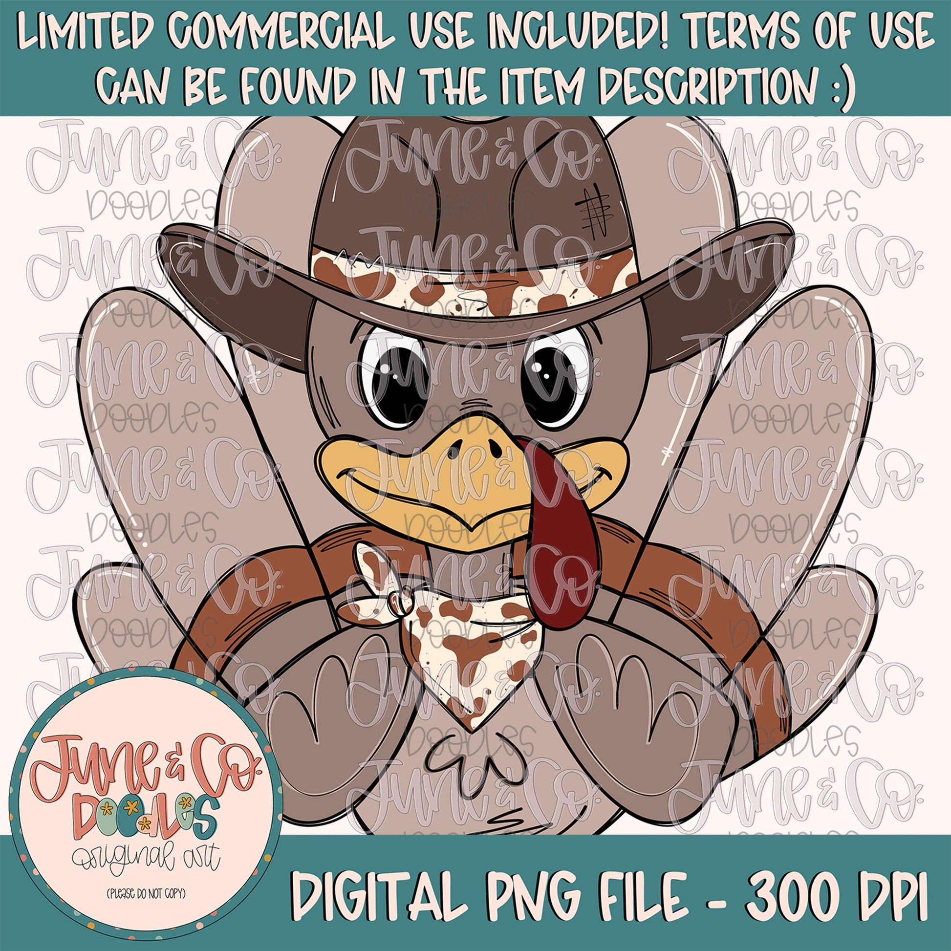 Cowboy Turkey PNG| Western Turkey With Hat Sublimation File| Country Thanksgiving Shirt Design| Hand Drawn Printable Art| Digital Download
