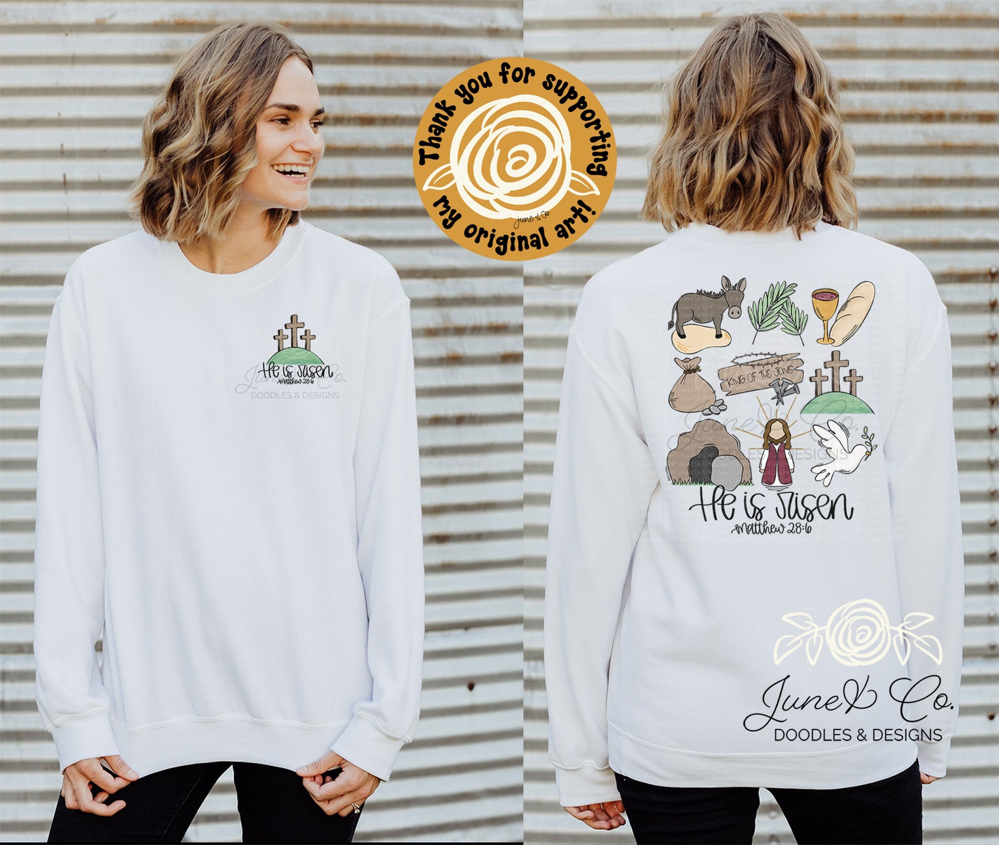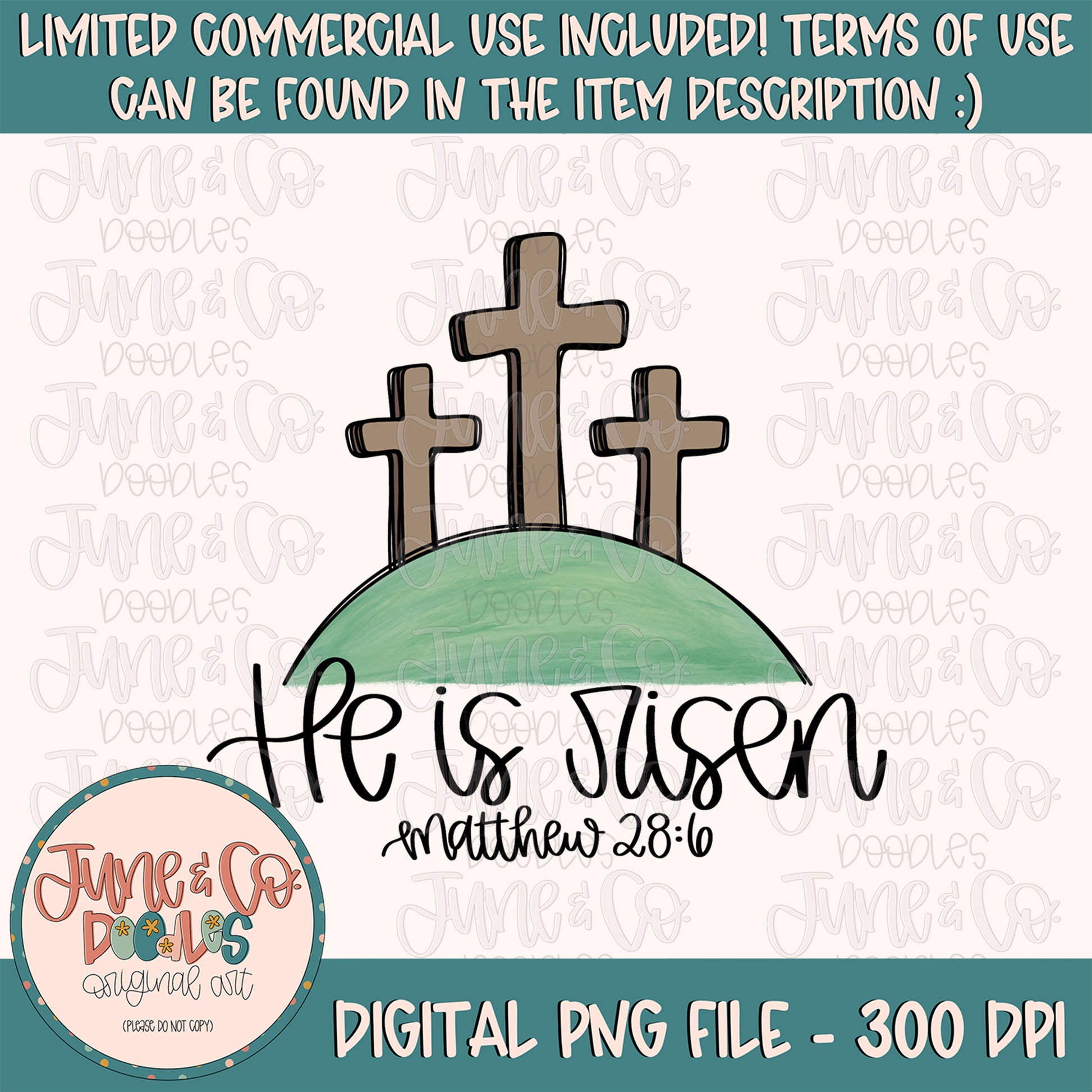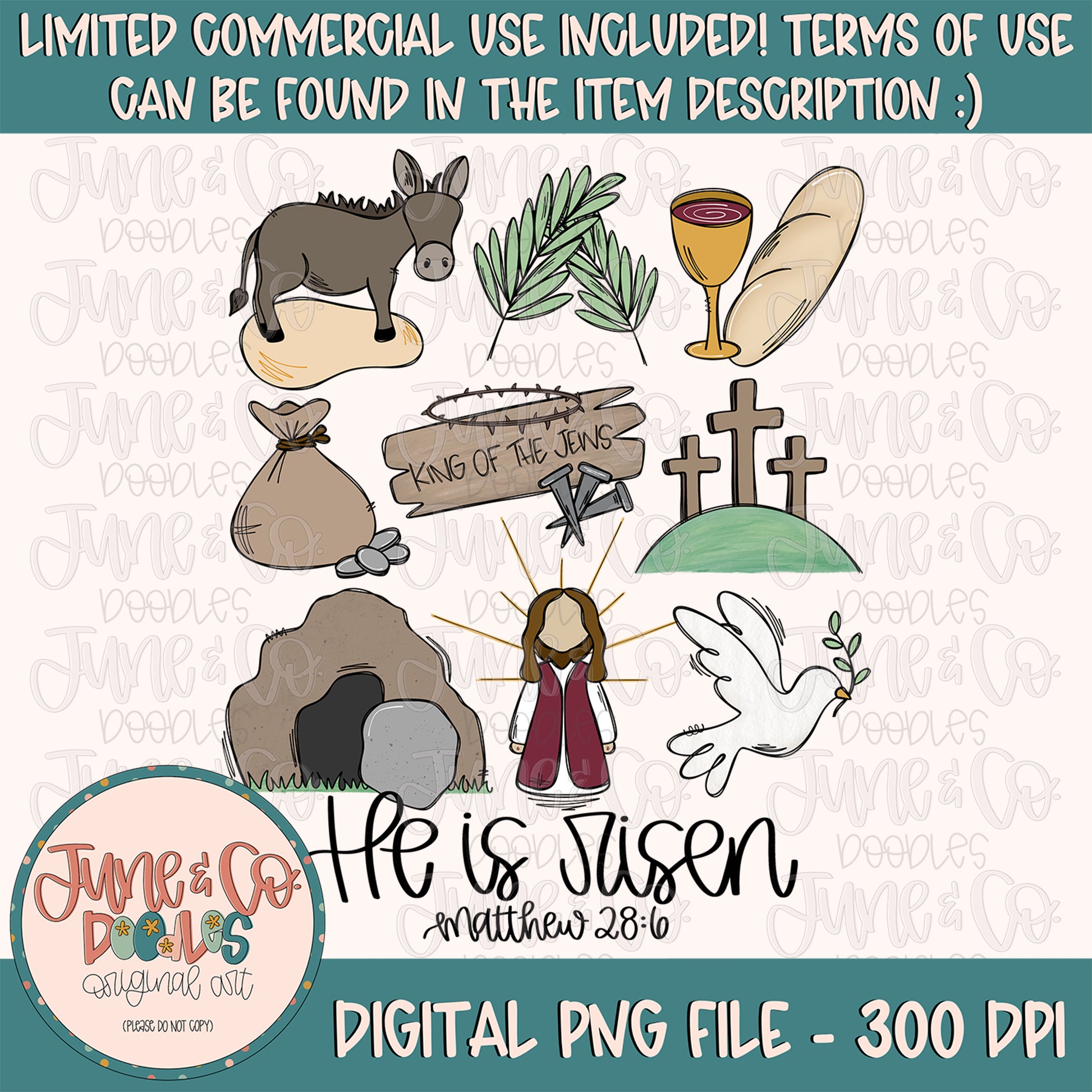 Easter Story PNG| Faith Based Easter Sublimation File| He Is Risen Shirt Design| Hand Sketched Printable Art| Instant Download