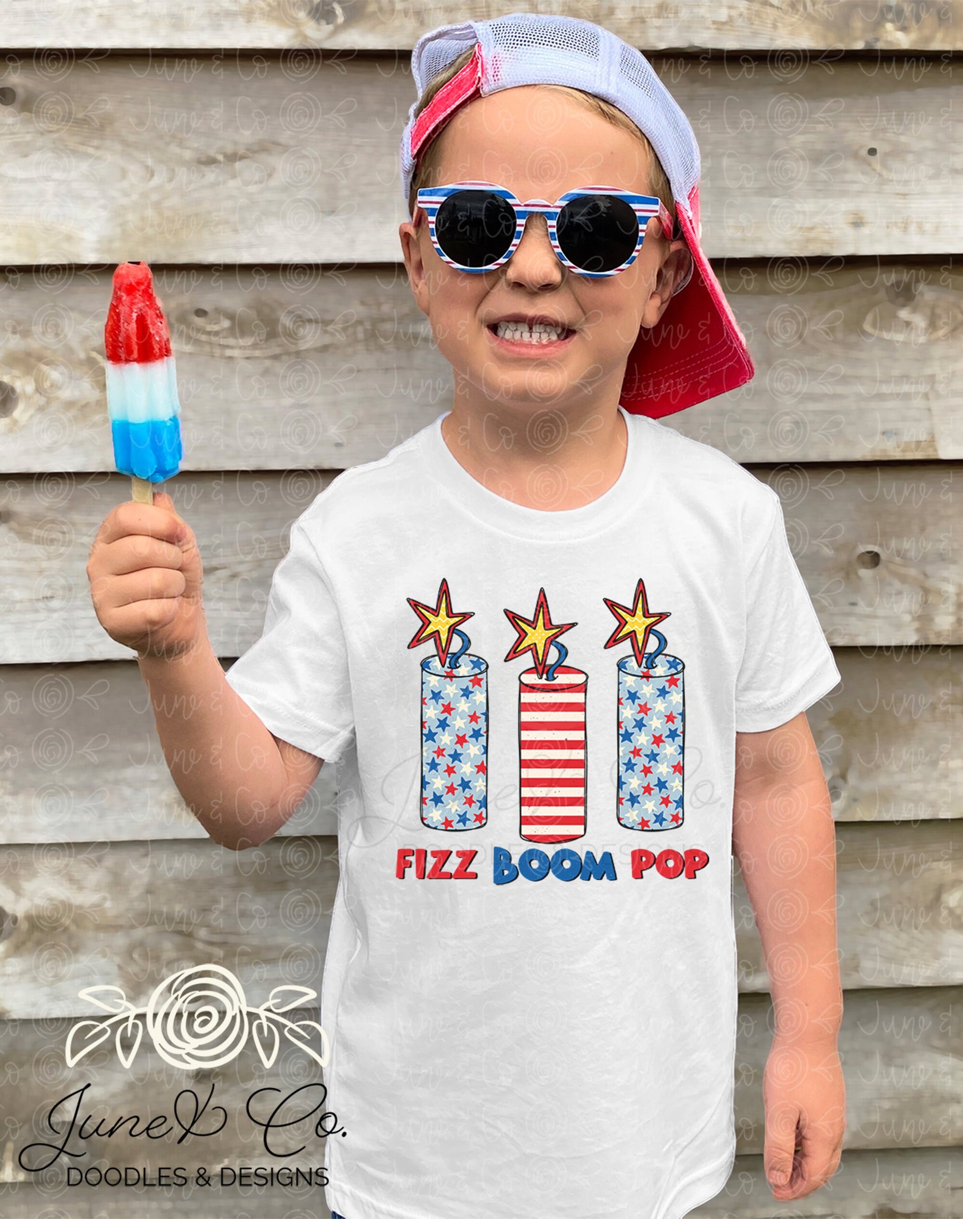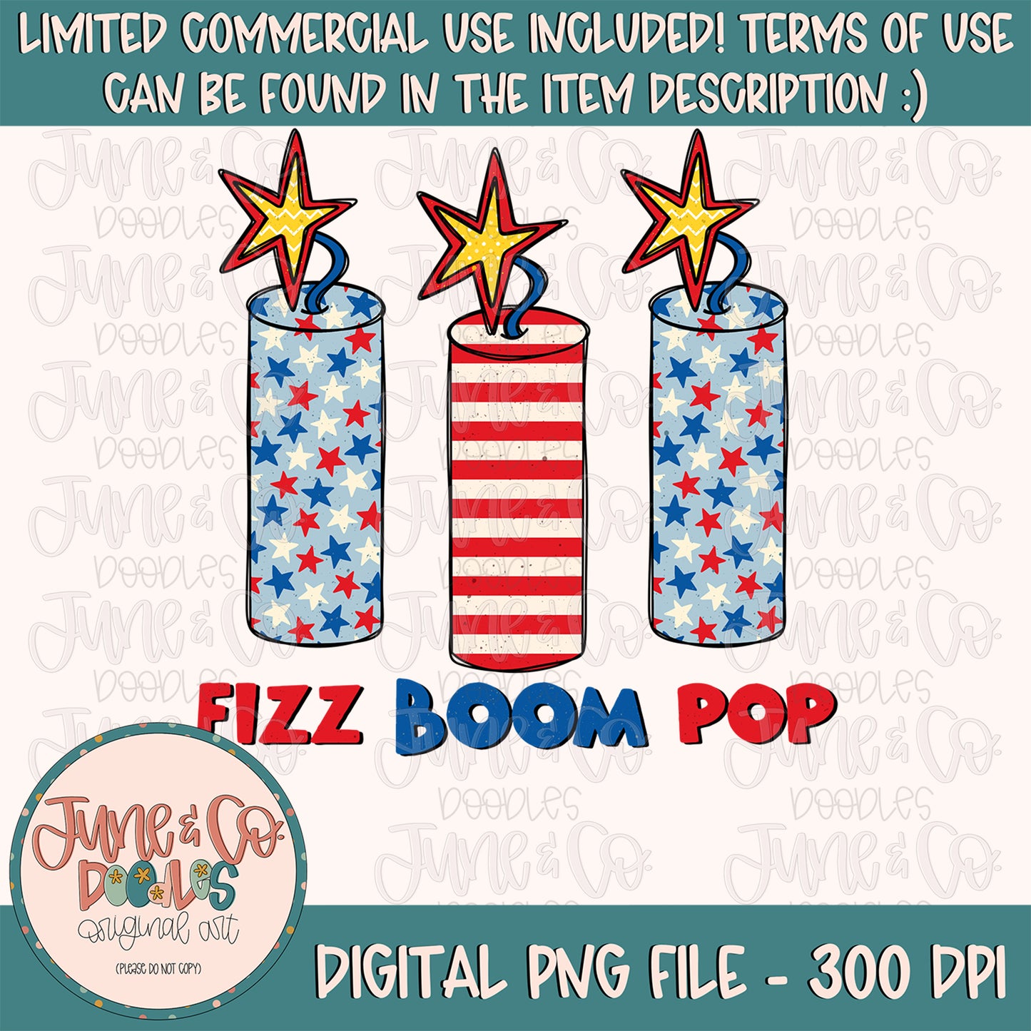 Fizz Boom Pop PNG| Firework Trio Sublimation File| Kids Patriotic Shirts Design| 4th of July Printable Art| Instant Download
