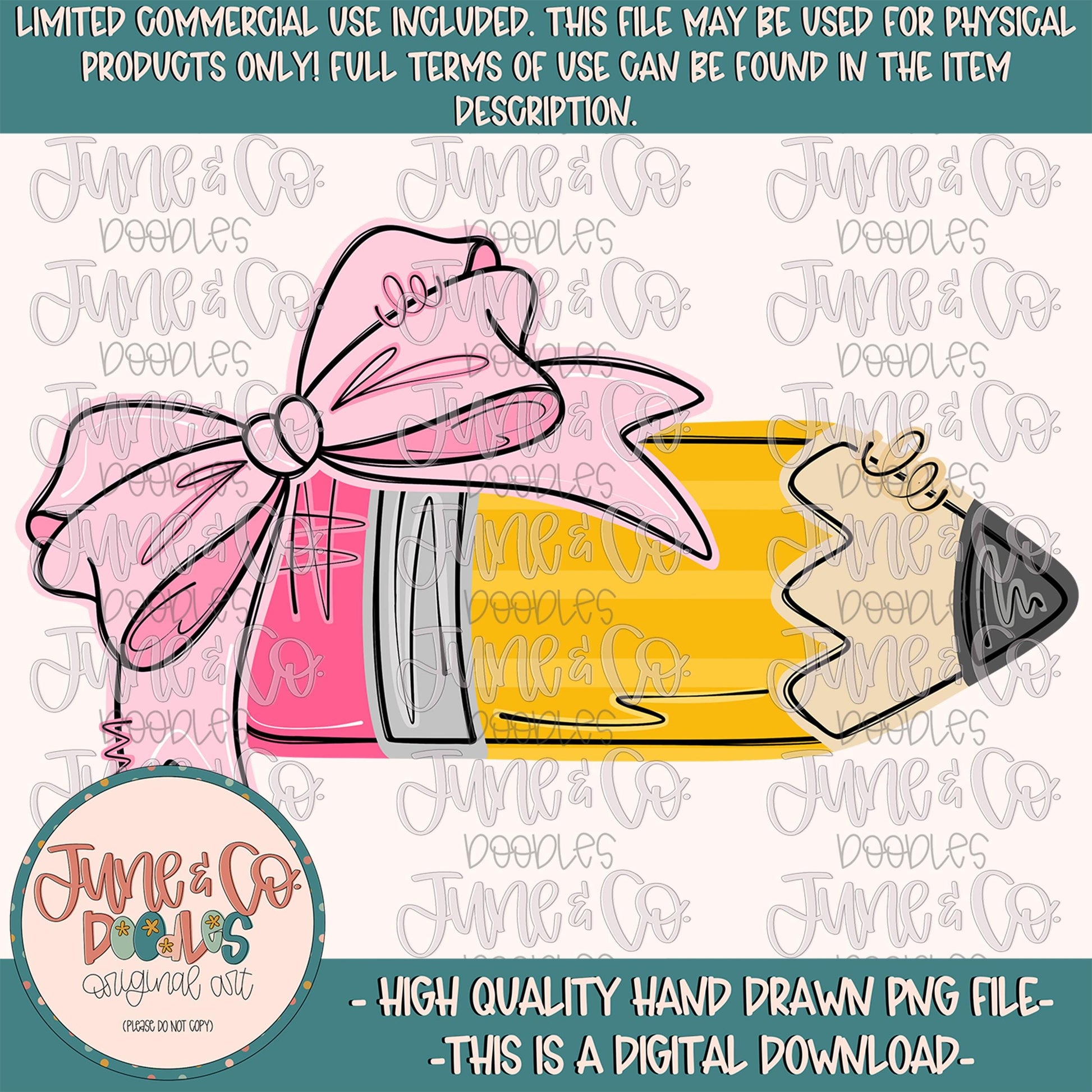 Girls Pencil With Bow PNG features a hand drawn pencil with a pink bow. This design is oh so sweet and perfect for back to school!