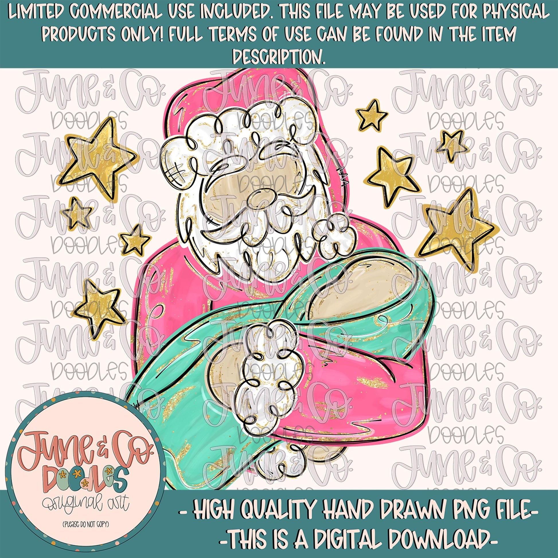 Glam Painted Santa & Baby Jesus- Pink| Brush Stroke Santa Sublimation File| Faith Christmas Holiday Design| Hand Drawn Art| Digital Download