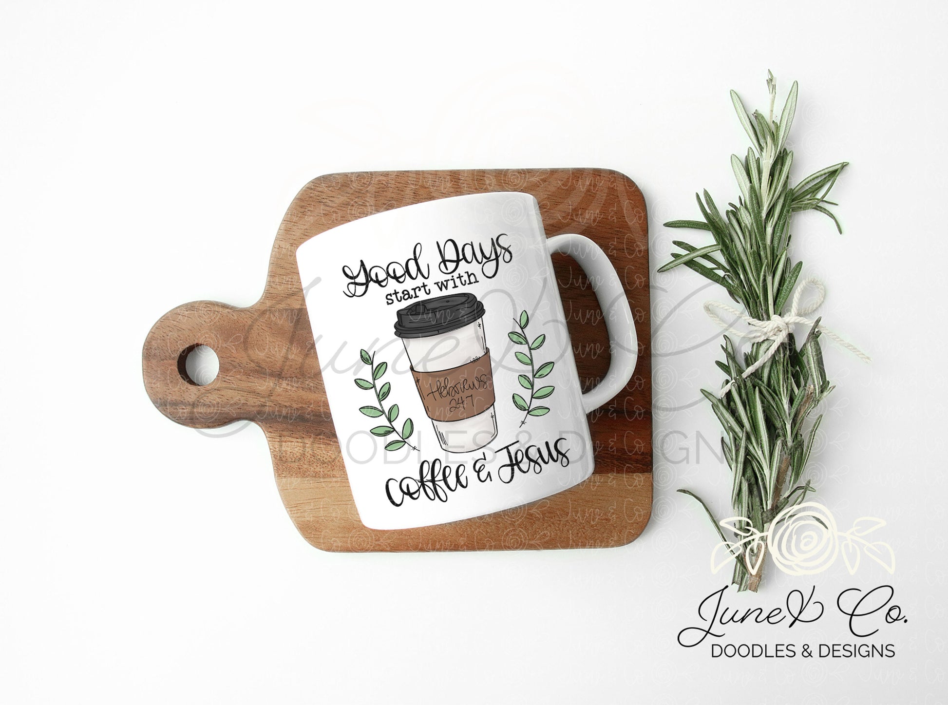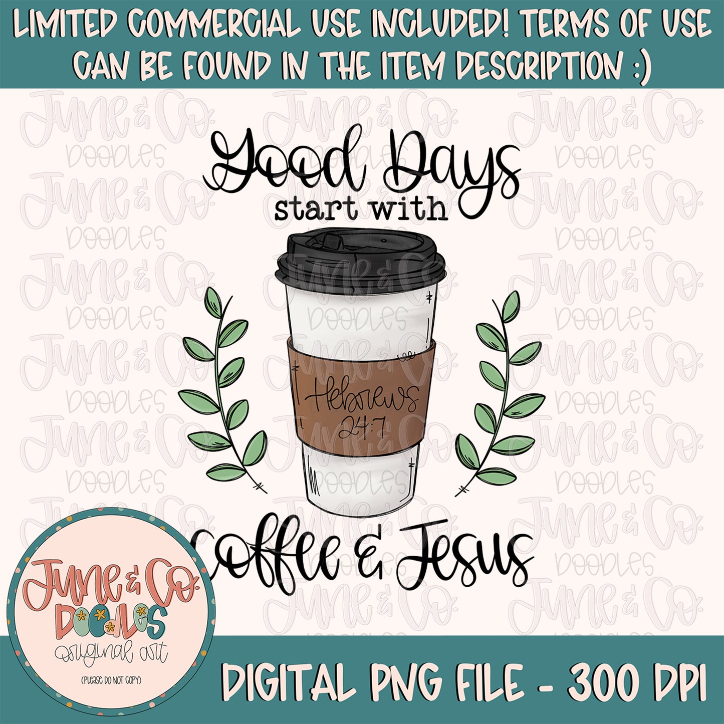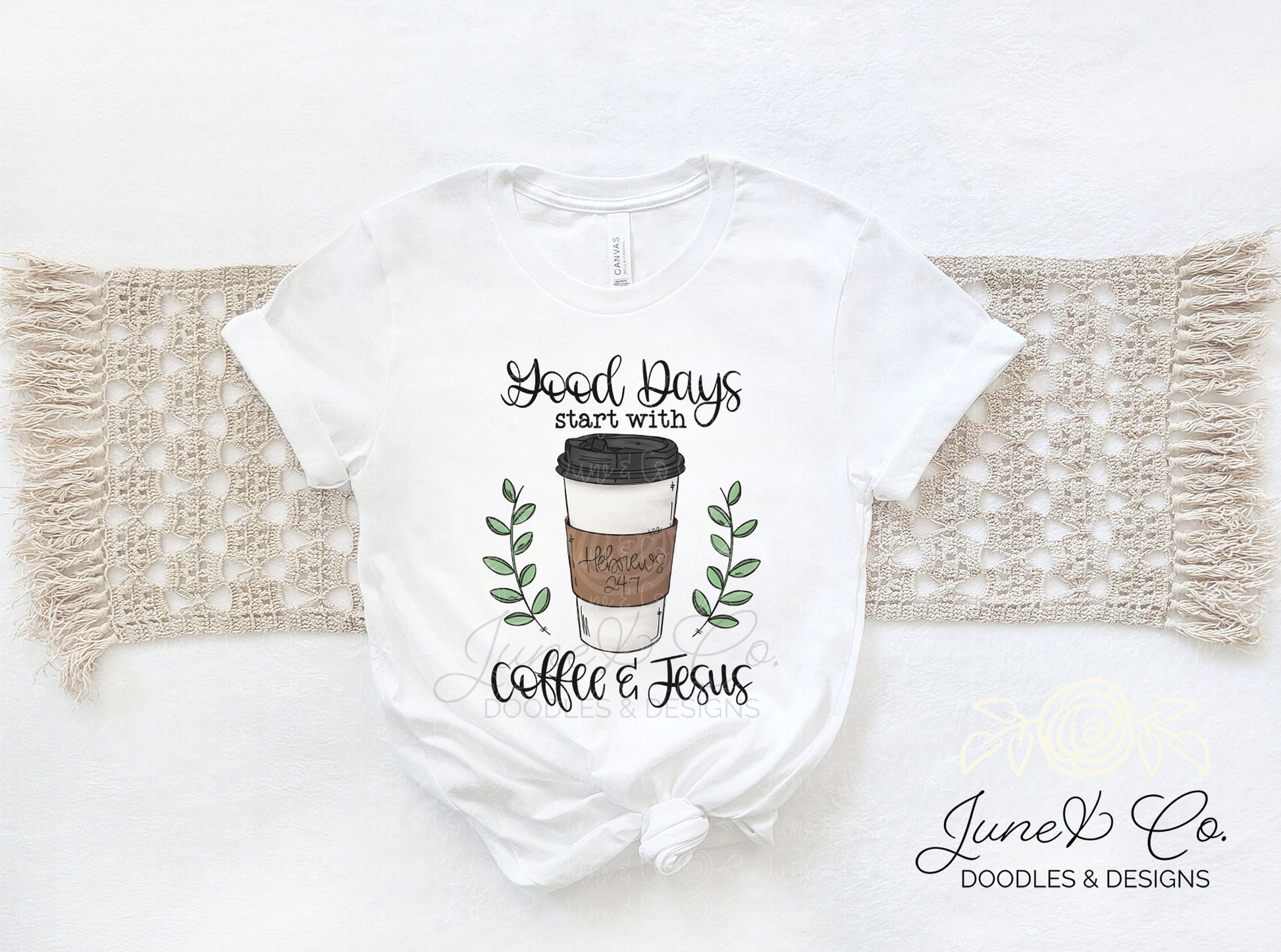 Good Days Start With Coffee and Jesus PNG| Coffee and Jesus Sublimation File| Christian Printable Art| Faith Shirt Design| Instant Download