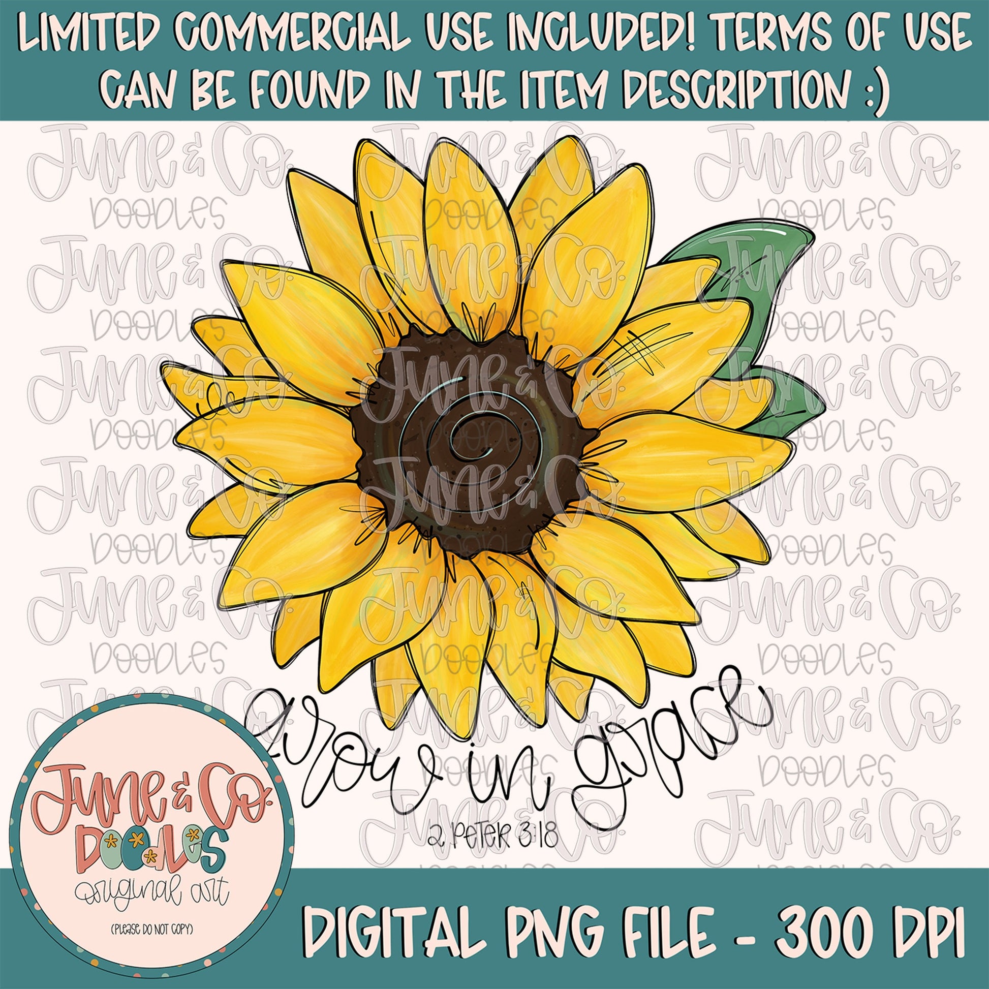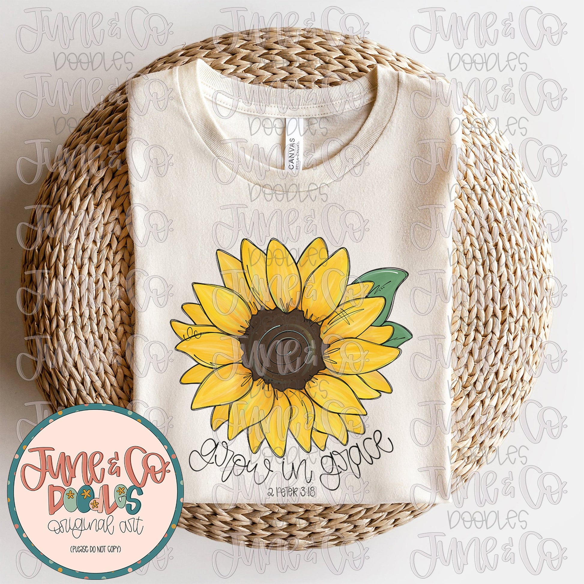 Grow In Grace PNG| Sunflower Bible Verse Sublimation File| Faith Based Fall Shirt Design| Hand Lettered Printable Art| Instant Download