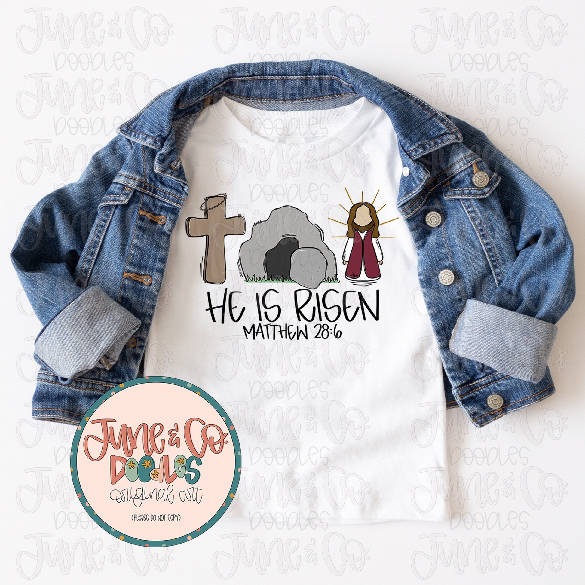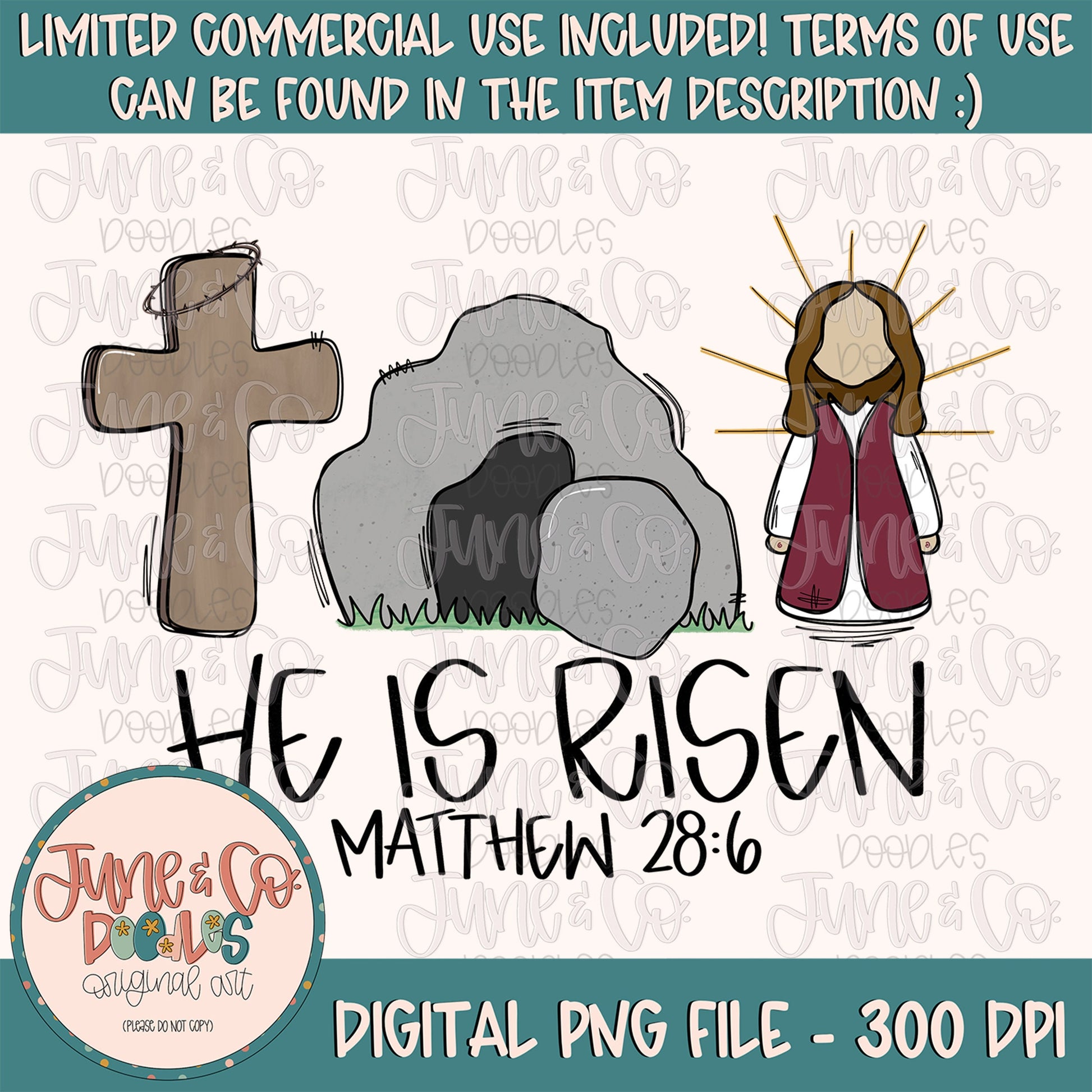 He Is Risen Trio PNG| Faith Based Easter Sublimation File| Easter Story Shirt Design| Hand Sketched Printable Art| Instant Download