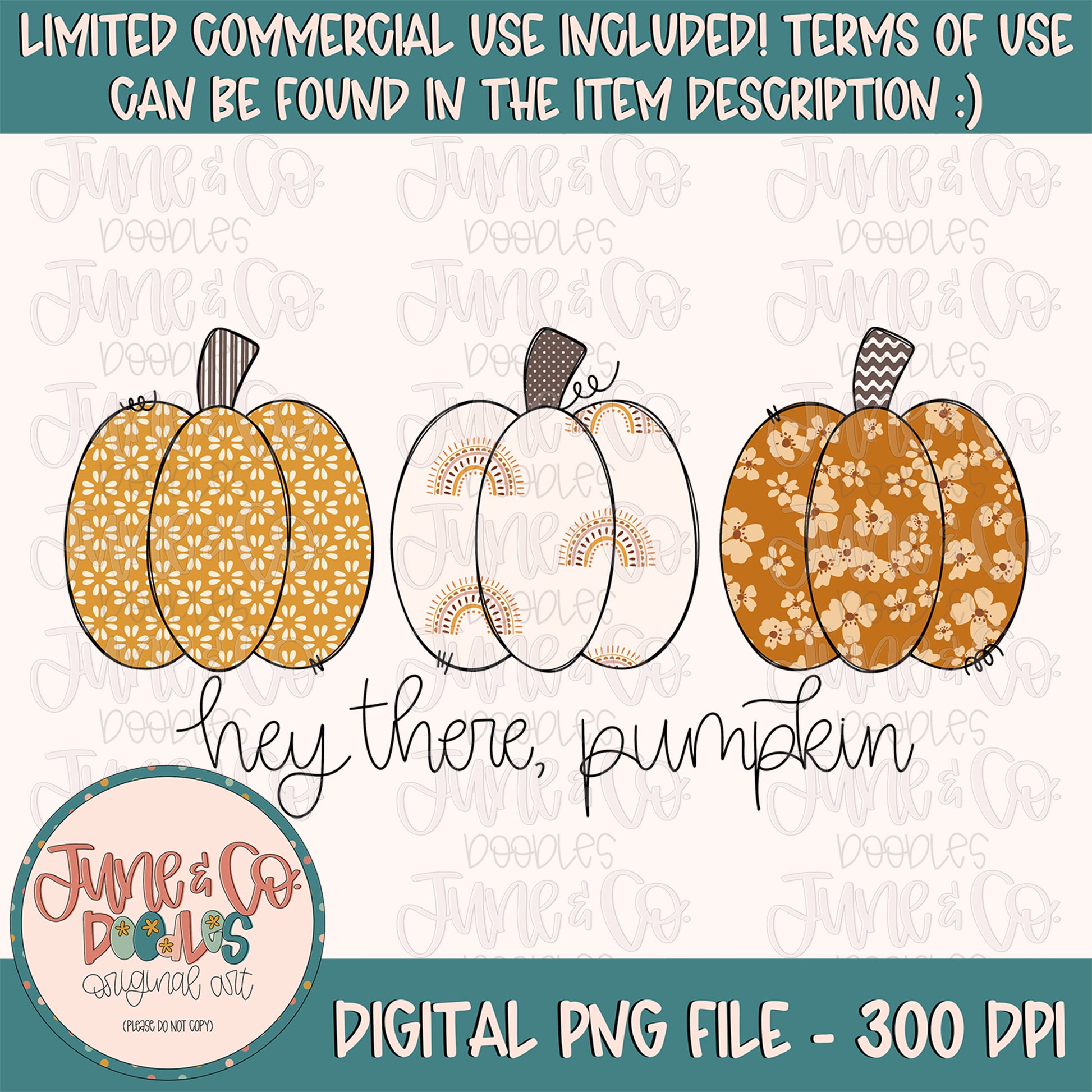 Hey There Pumpkin PNG| Boho Pumpkin Trio Sublimation File| Autumn Season Shirt Design| Hand Drawn Printable Art| Instant Download