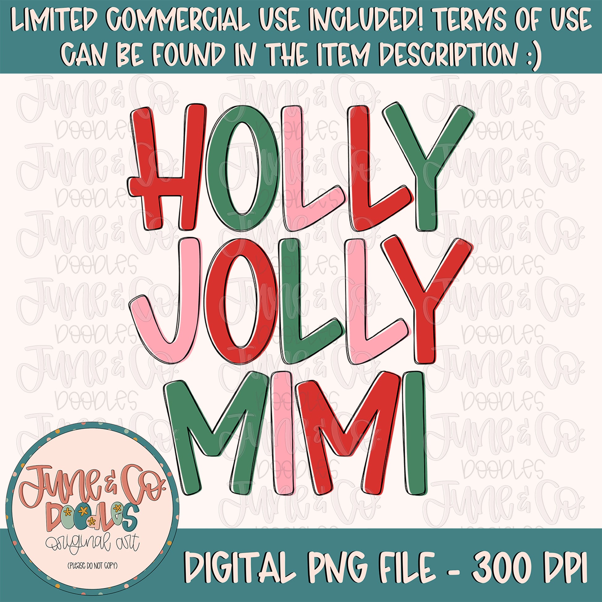 Holly Jolly Mimi PNG| Christmas Sublimation File| Holiday Season Shirt Design| Hand Lettered Printable Art| Instant Download