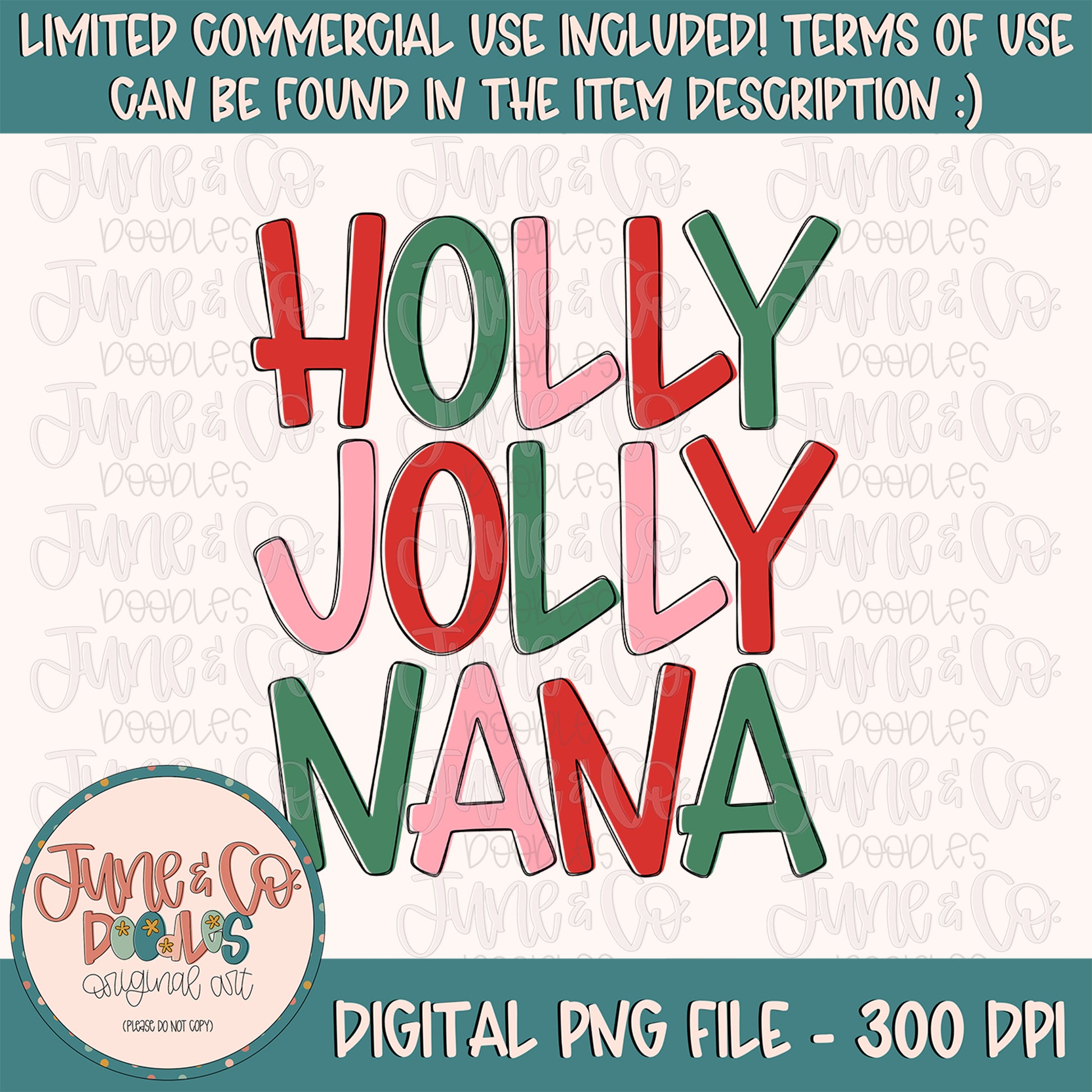 Holly Jolly Nana PNG| Christmas Sublimation File| Holiday Season Shirt Design| Hand Lettered Printable Art| Instant Download