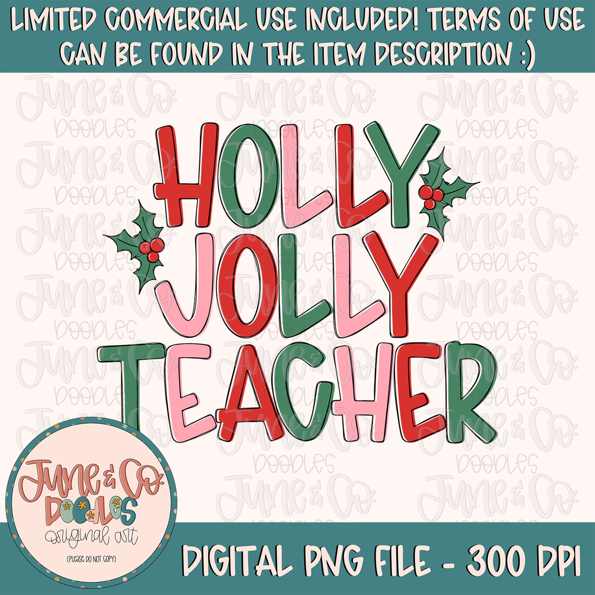 Holy Jolly Teacher PNG| Christmas Teacher Sublimation File| Holiday Season Shirt Design| Hand Lettered Printable Art| Instant Download