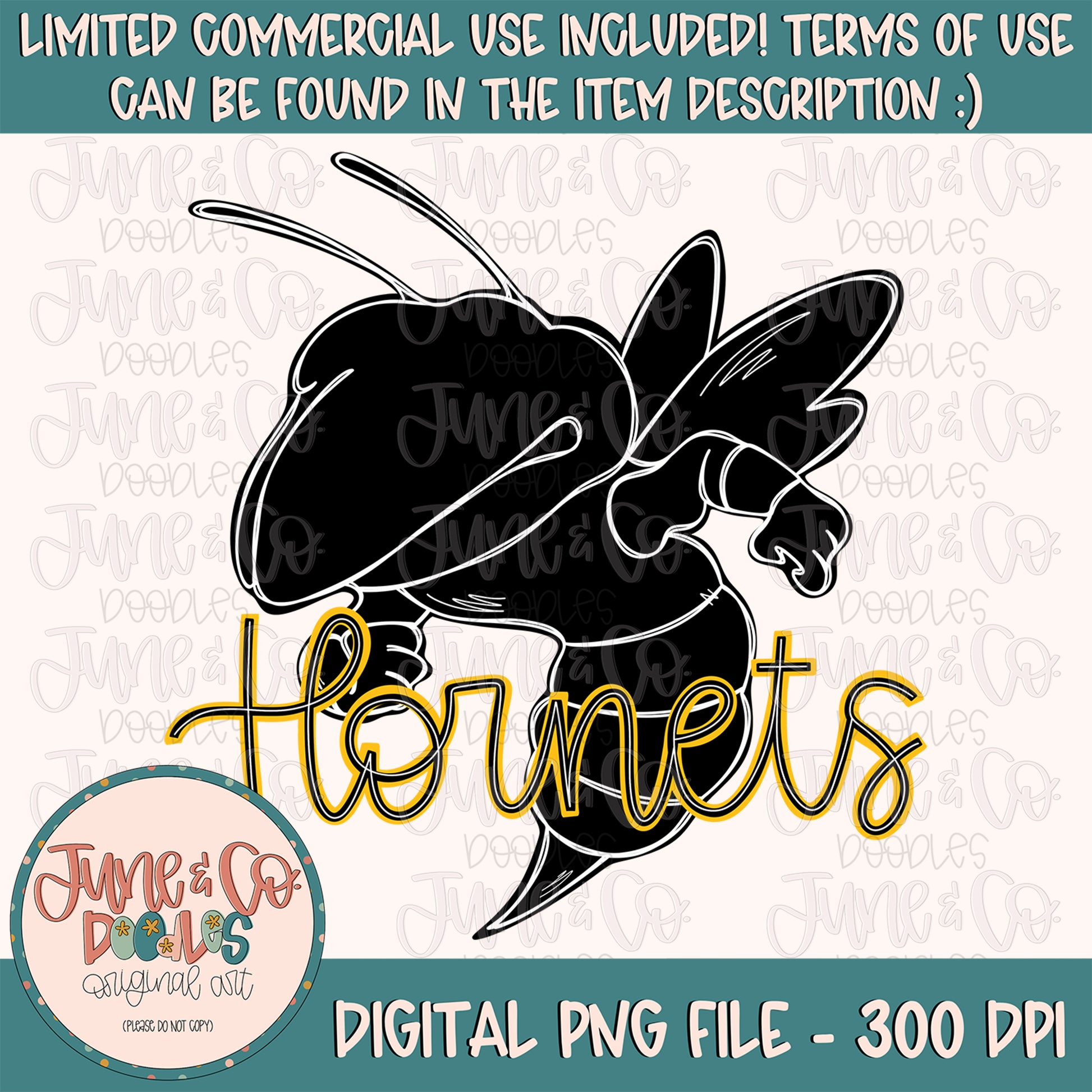 Hornets Silhouette PNG| Mascot Doodle Sublimation File| Game Day Shirt Design| Hand Lettered Printable Art| Instant Download