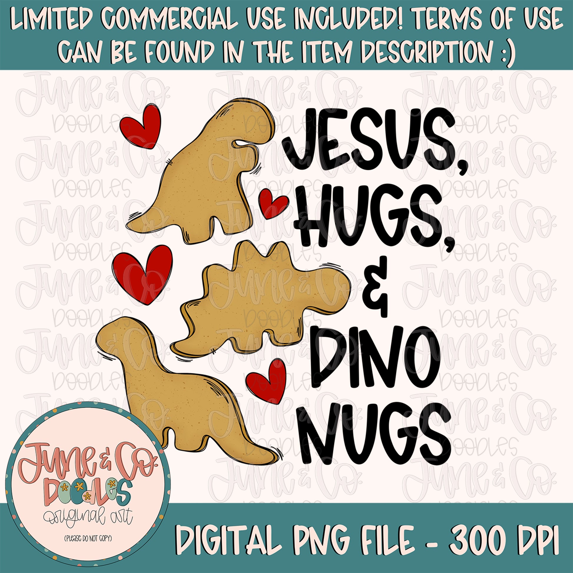 Jesus, Hugs, & Dino Nugs PNG| Chicken Nuggets Sublimation File| Boys Faith Shirt Design| Hand Lettered Printable Art| Instant Download