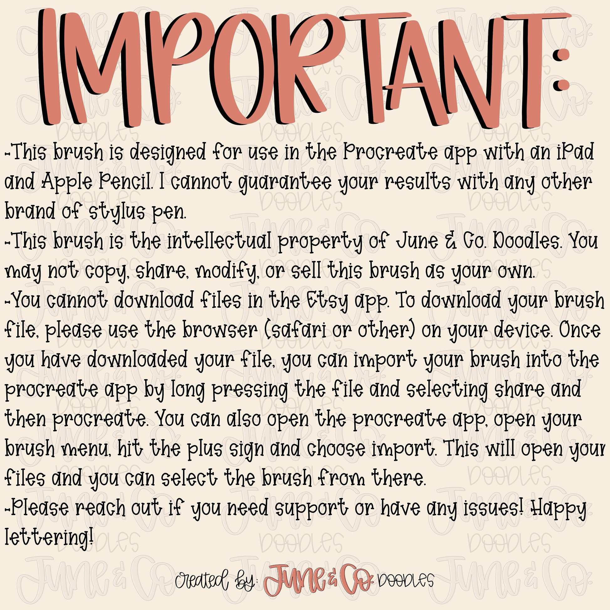 -This brush is the intellectual property of June & Co. Doodles & and may NOT be copied or represented as your own work, re-sold, used in whole or in part to create another brush for sale, shared, or gifted for free or for monetary gain.