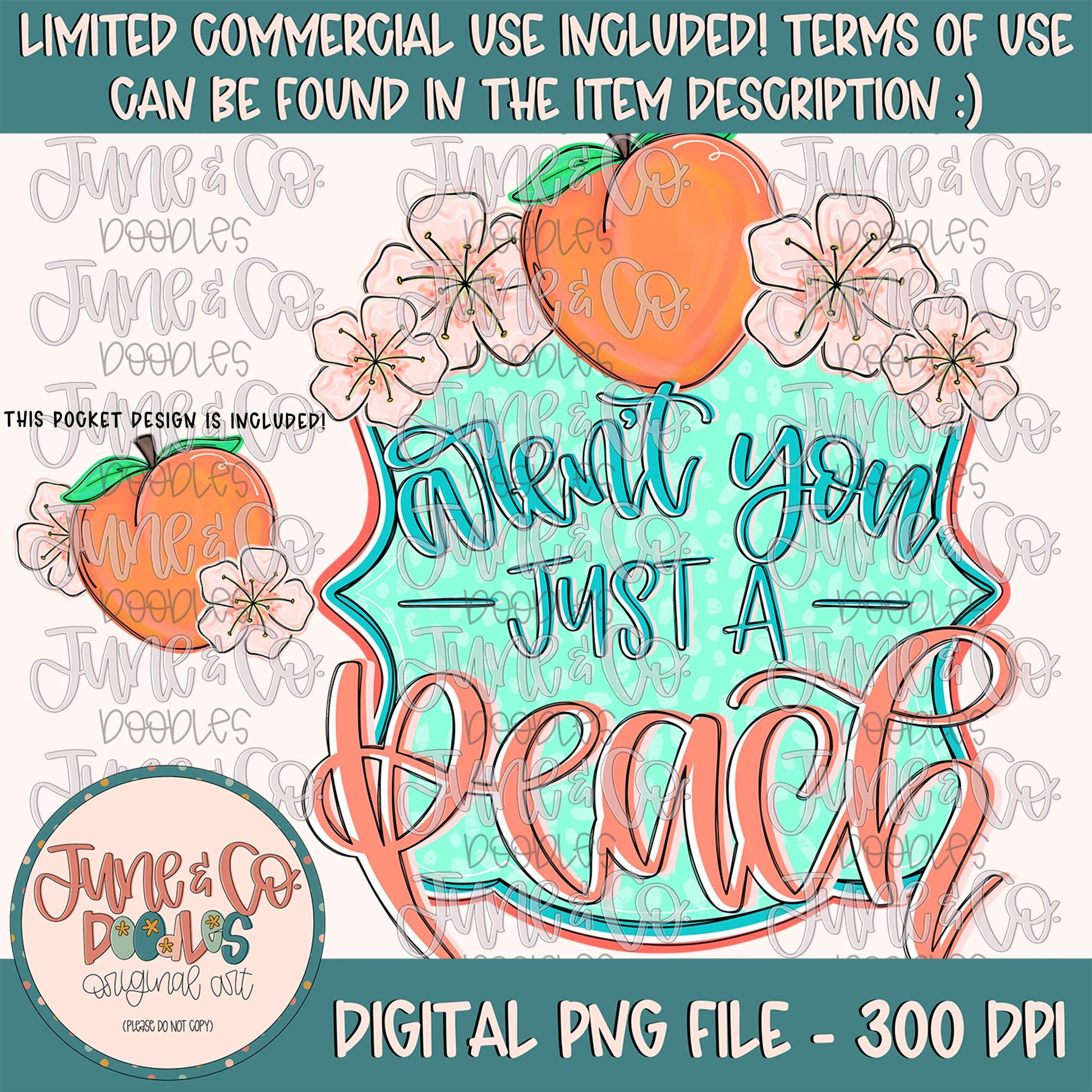 Just A Peach PNG| Southern Sayings Sublimation File| Country Girl Shirt Design| Hand Lettered Printable Art| Digital Download