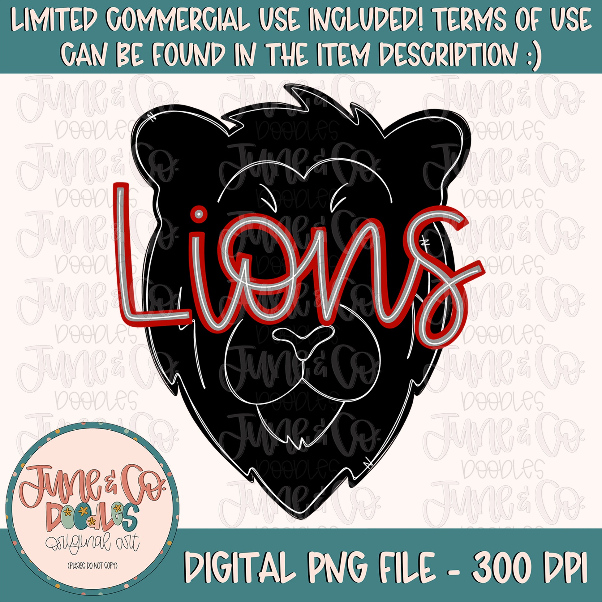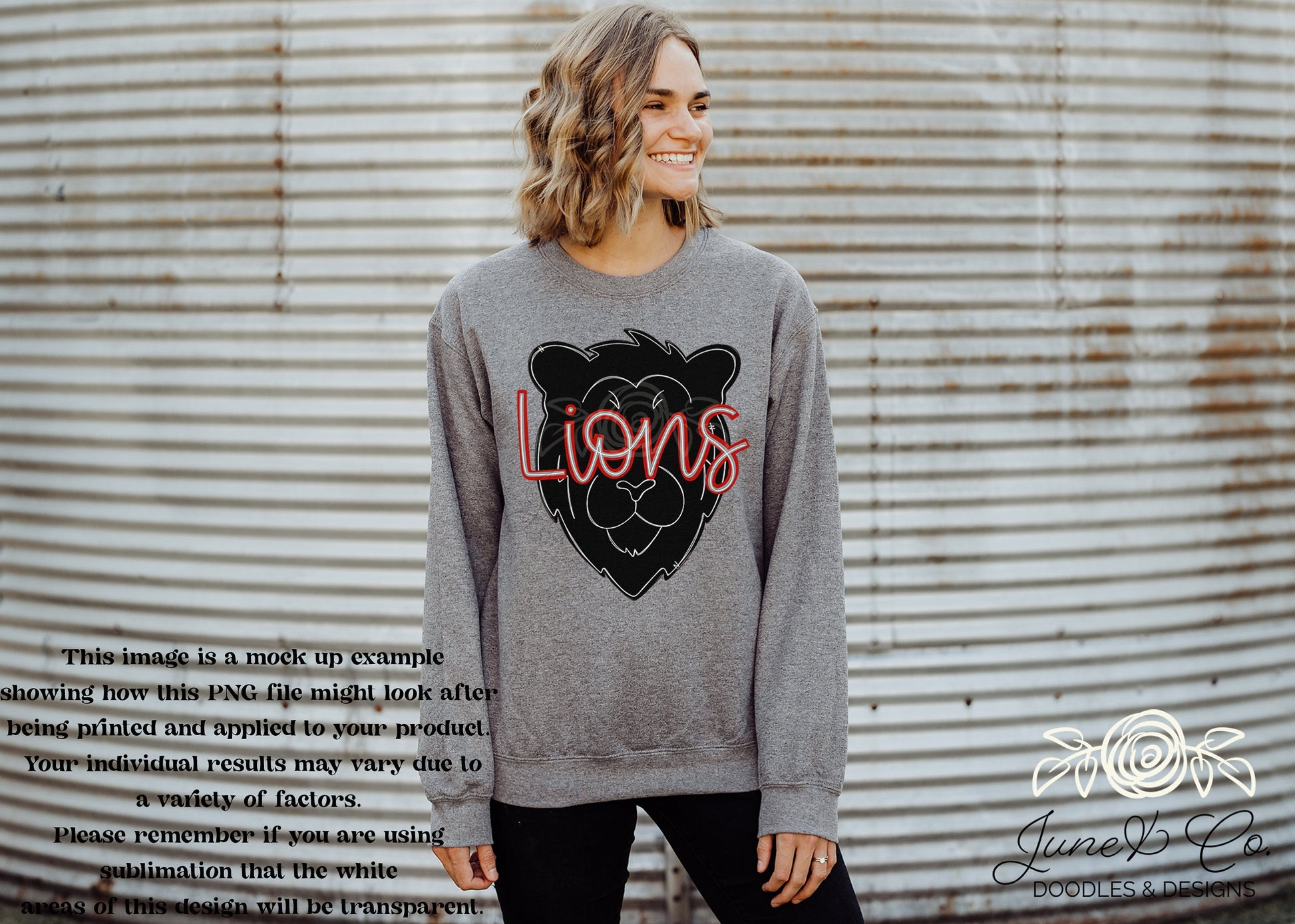 Lions Mascot PNG| Custom School Mascot Sublimation File| School Pride Shirt Design| Hand Lettered Printable Art| Instant Download