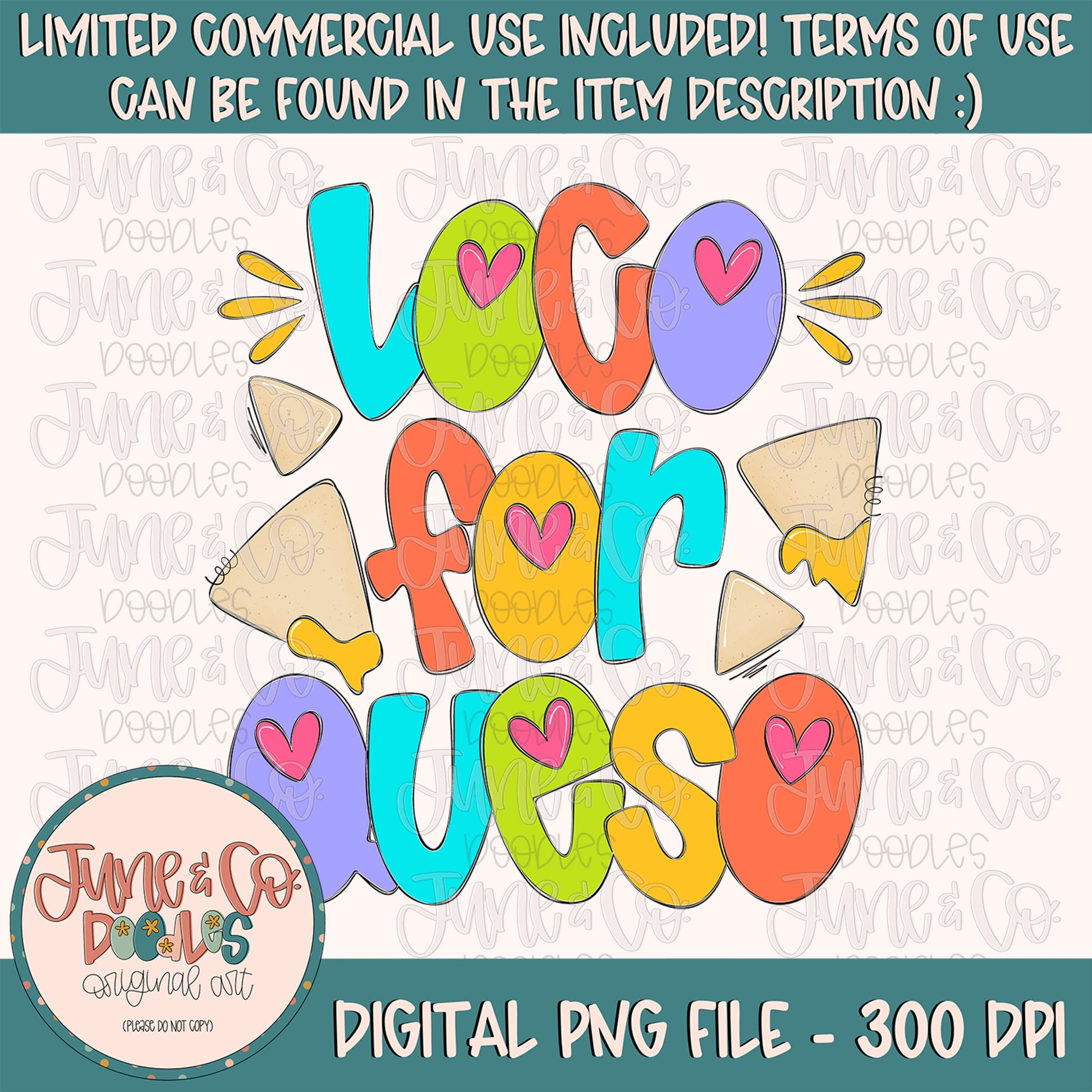 Loco For Queso Girls PNG| Girls Cinco De Mayo Sublimation File| Cheese Dip Shirt Design | Hand Lettered Printable Art| Instant Download