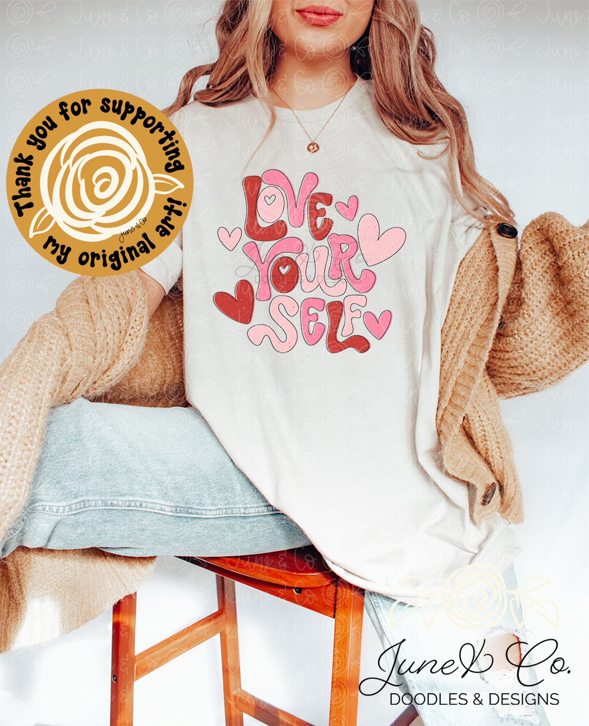 Love Yourself PNG| Retro Valentine's Sublimation File| Ladies Inspirational Shirt Design| Hand Lettered Printable Art| Instant Download