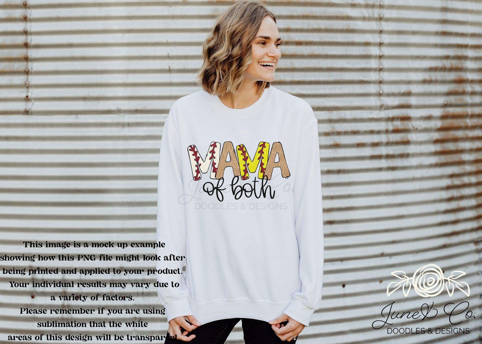 Mama of Both PNG| Sports Mom Sublimation File| Baseball and Softball Season Shirt Design| Hand Lettered Printable Art| Instant Download
