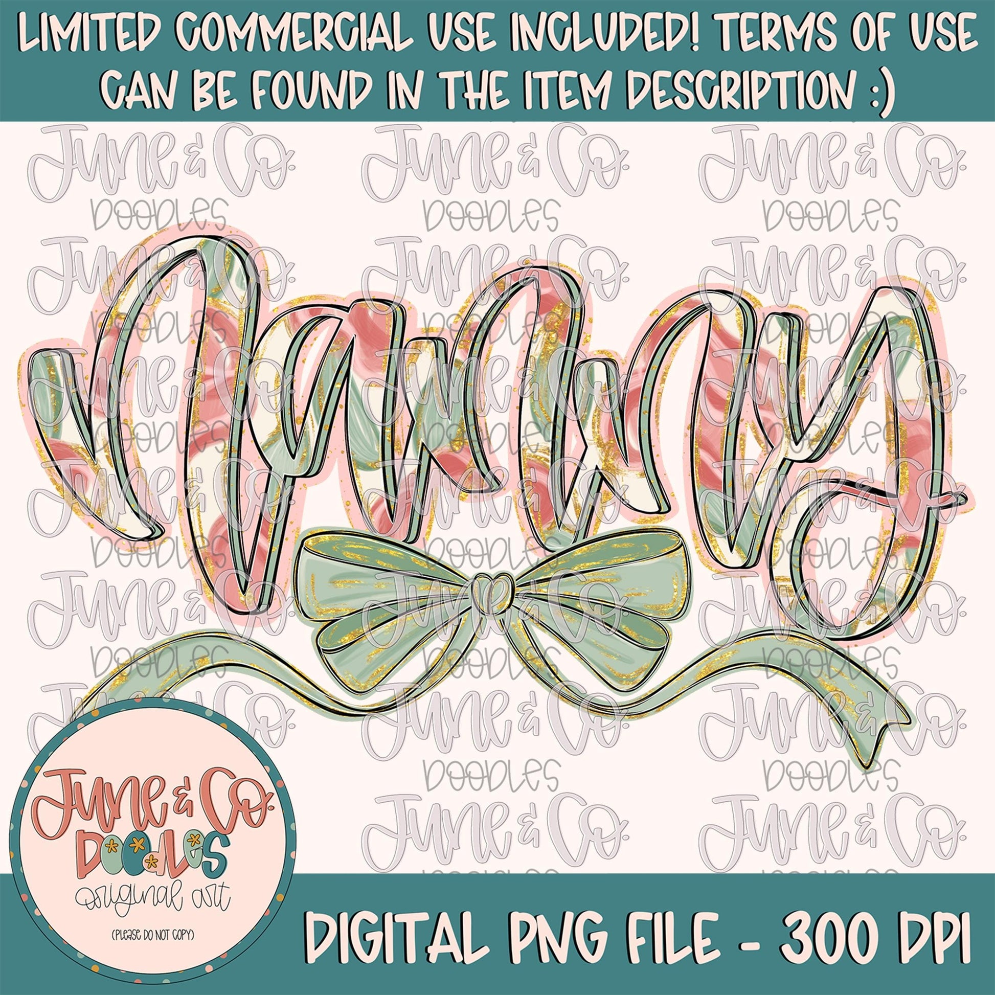 Painted Floral Nanny PNG| Nanny With Bow Sublimation File| Floral Mother's Day Shirt Design| Hand Lettered Printable Art| Digital Download