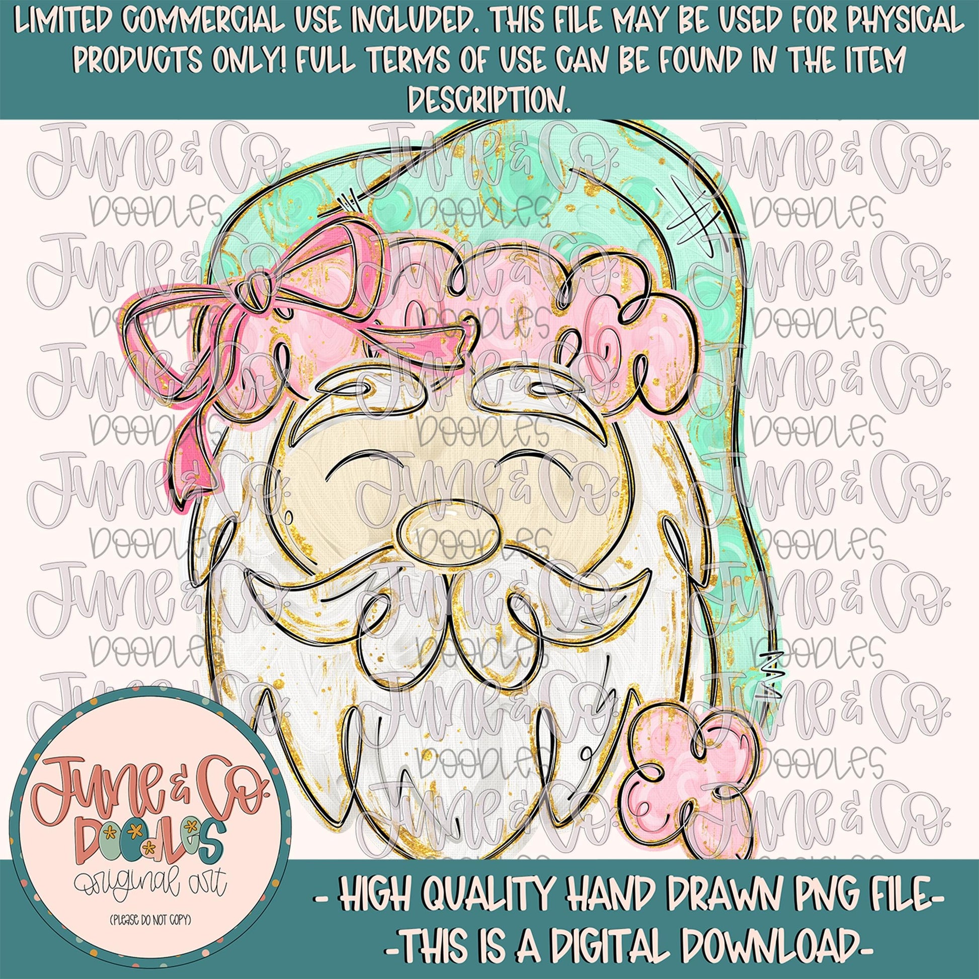 Painted Santa PNG-Mint & Pink| Brush Stroke Santa Sublimation File| Glam Santa| Christmas Holiday Design| Hand Drawn Art| Digital Download