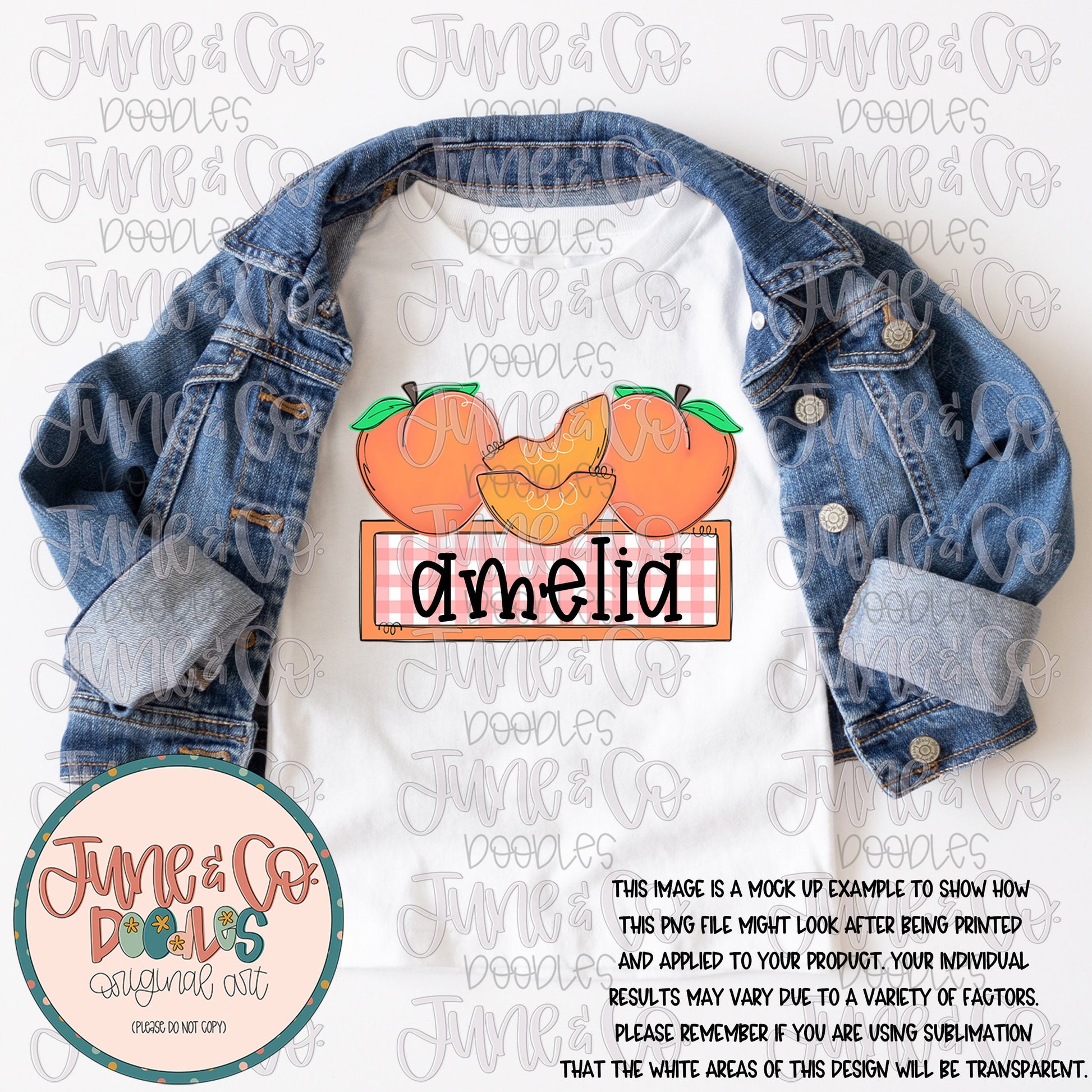 Peaches With Name Plate PNG| Girls Summer Time Sublimation File| Fruit Doodles Shirt Design| Printable Art| Instant Download