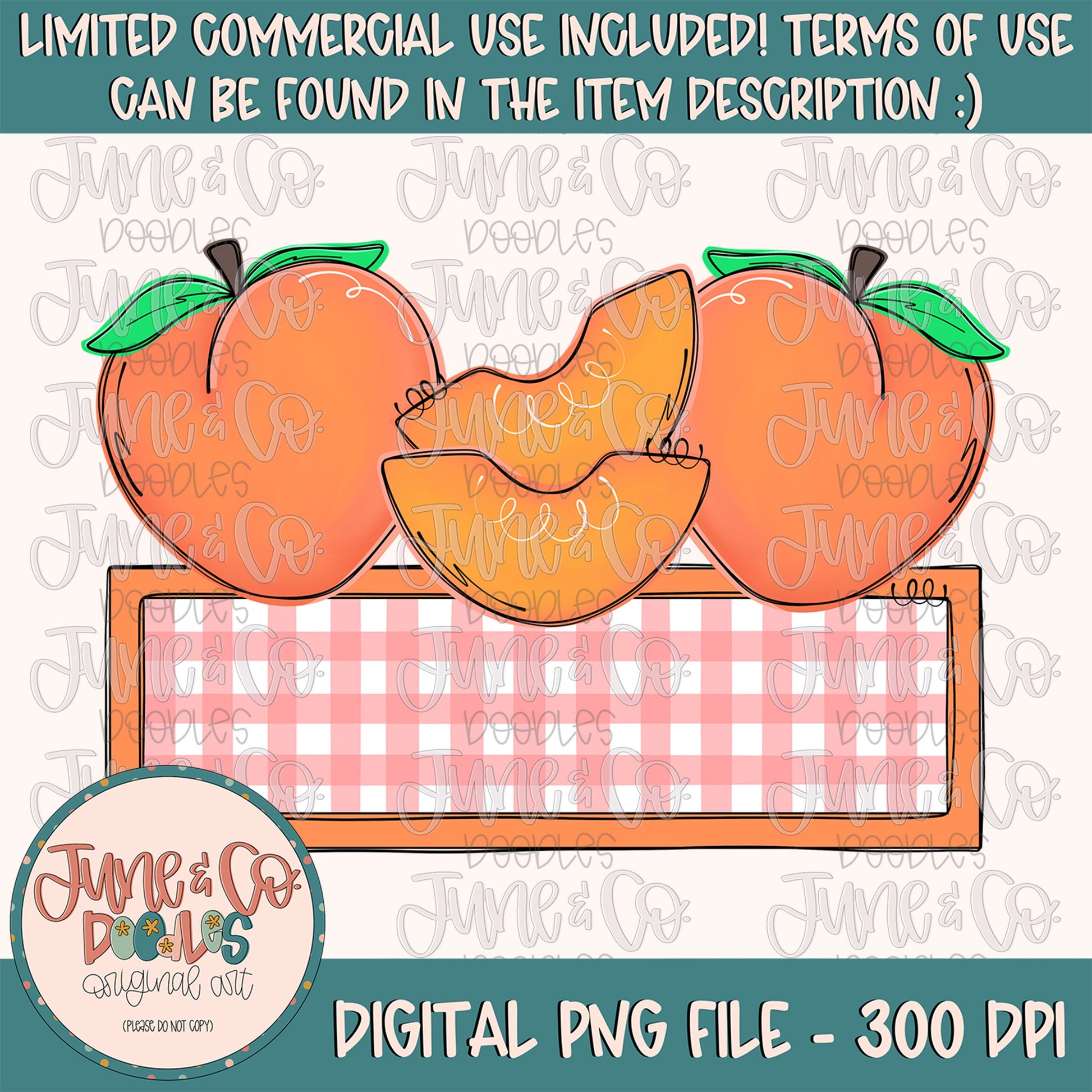 Peaches With Name Plate PNG features hand sketched peach doodles, with a matching name plate for easy personalization!
