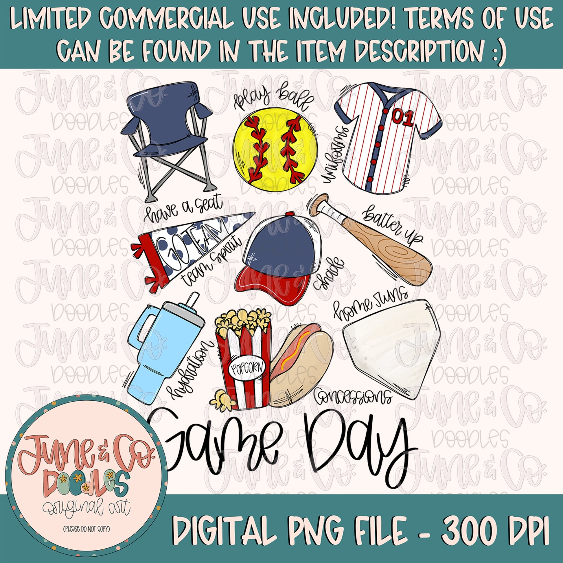 Softball Game Day PNG| Softball Things Sublimation File| Spring Sports Shirt Design| Hand Sketched Printable Art Instant Download