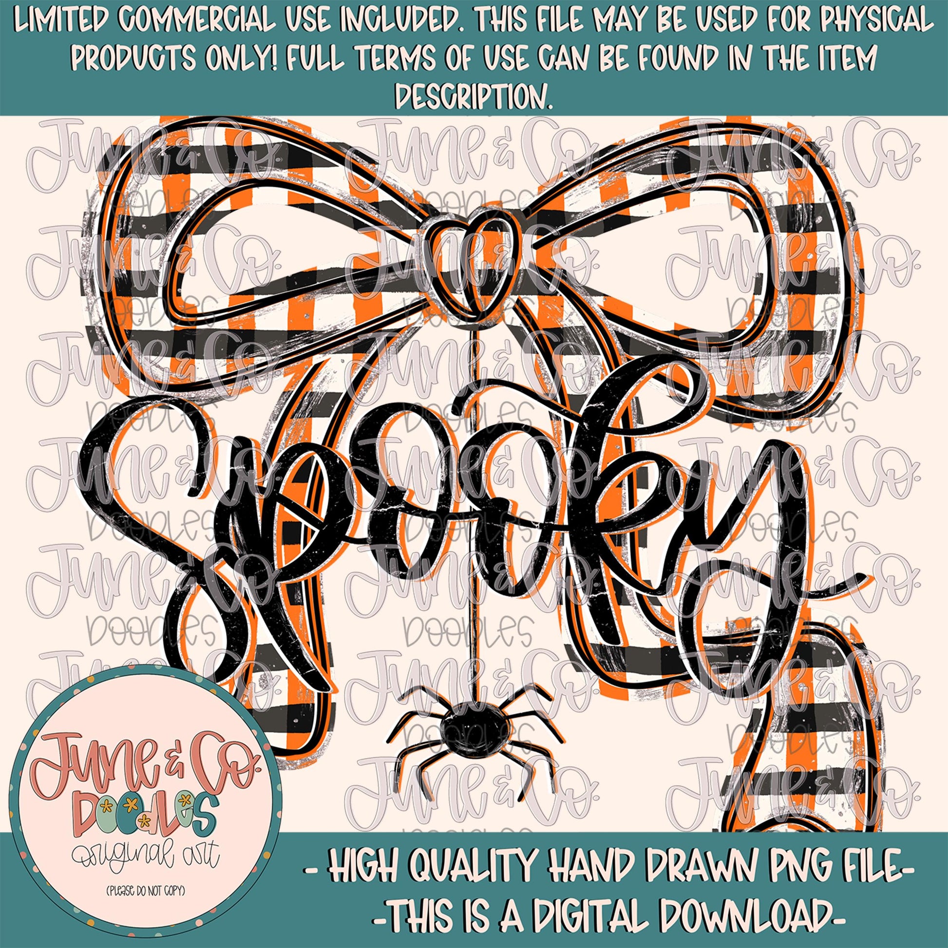 Spooky Bow PNG| Coquette Holiday Sublimation File| Preppy Halloween Shirt Design| Hand Drawn Art| Hand Lettering| Digital Download