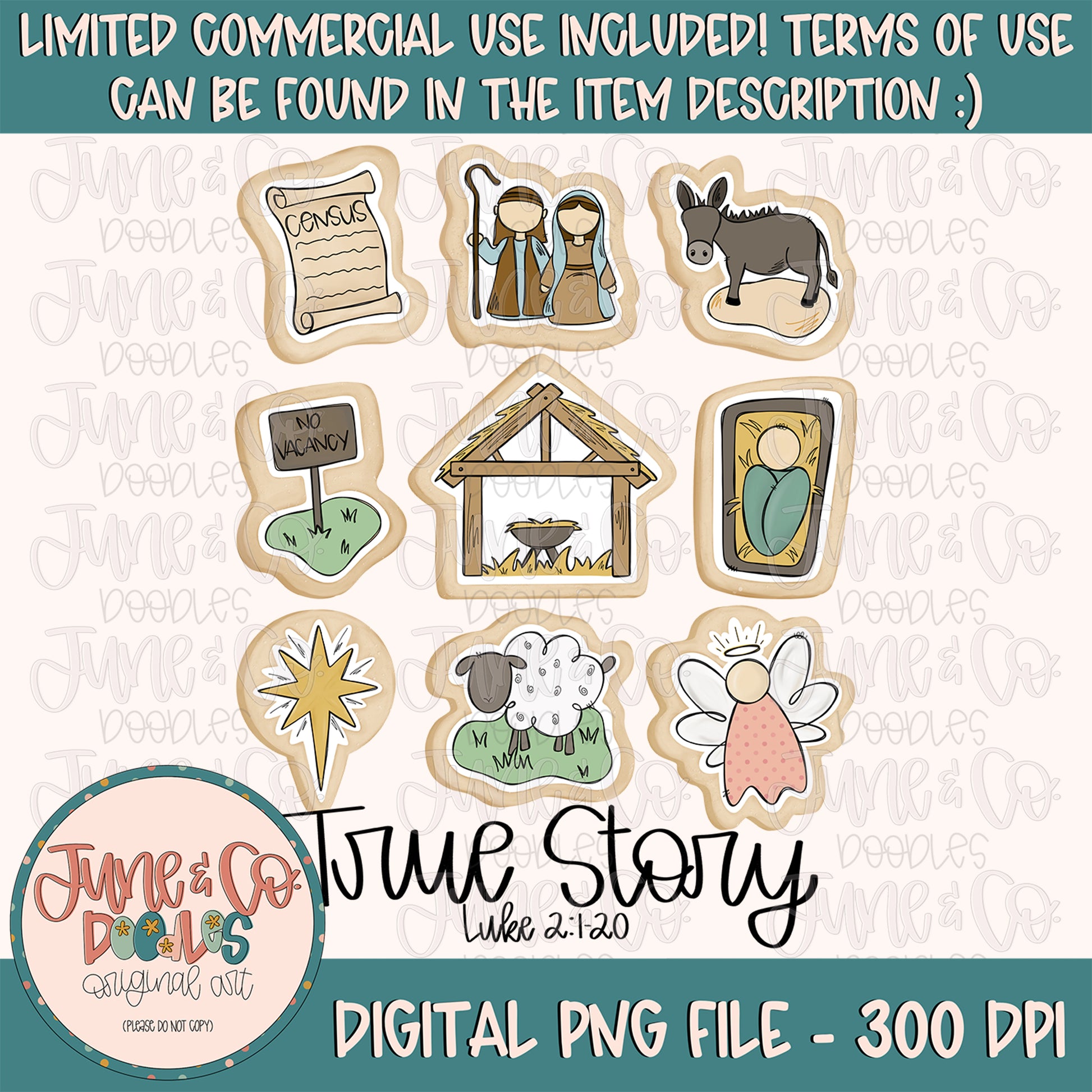 True Story Cookies PNG| Faith Based Christmas Sublimation File| Nativity Story Shirt Design| Hand Sketched Printable Art| Instant Download