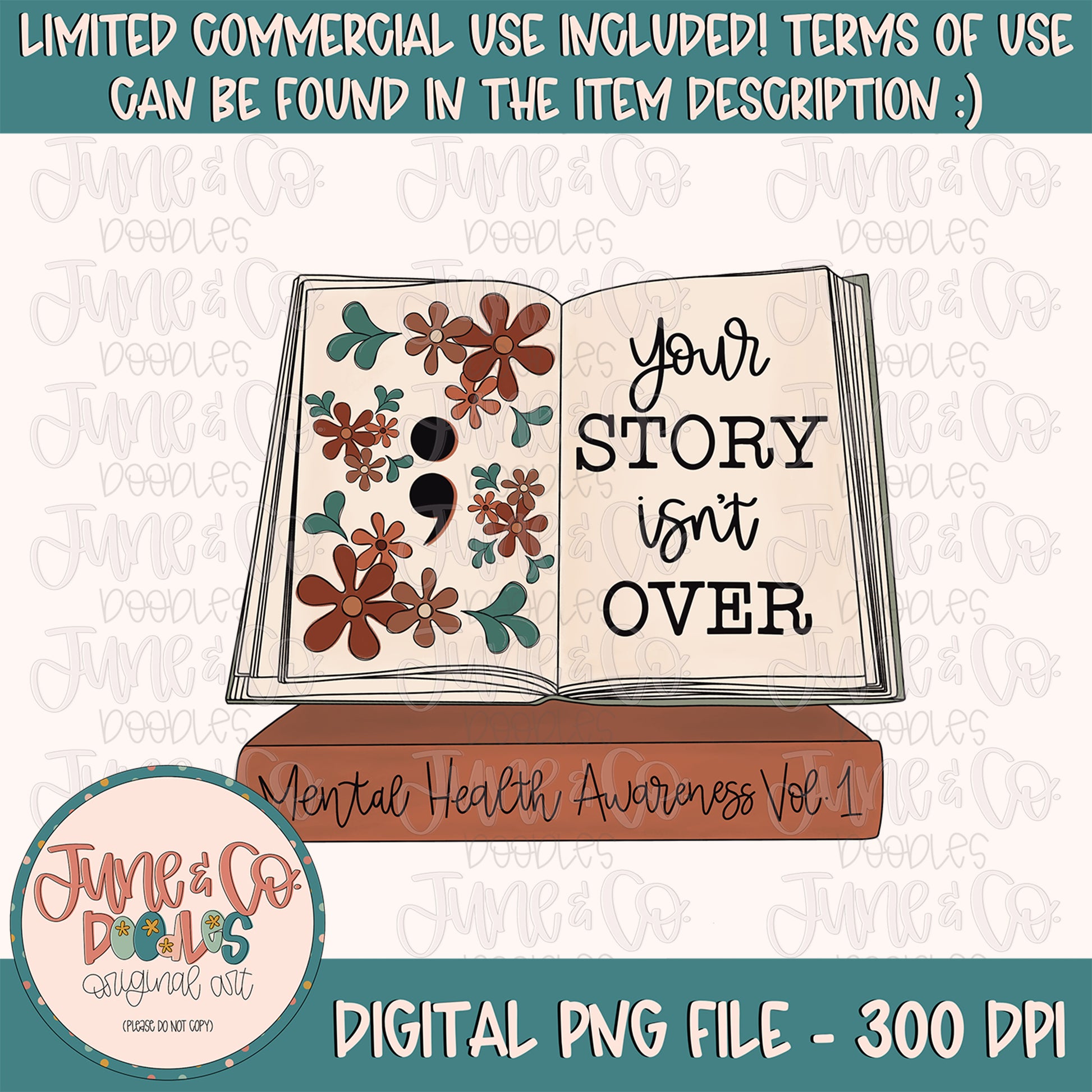 Your Story Isn't Over PNG| Mental Health Awareness Sublimation File| Semicolon Shirt Design| Hand Lettered Printable Art| Instant Download